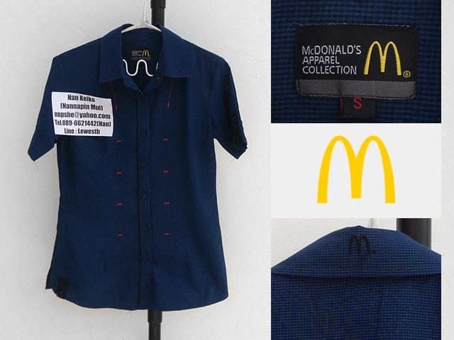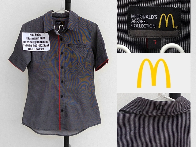 รหัสสินค้า C073 : (มือสอง) เสื้อ McDonald's Size S อก36นิ้ว ยาว25นิ้ว แขนยาว8.5นิ้ว ไหล่15นิ้วค่ะ ขาย 150บาทค่ะ (ฟรีค่าจัดส่งแบบลงทะเบียน)