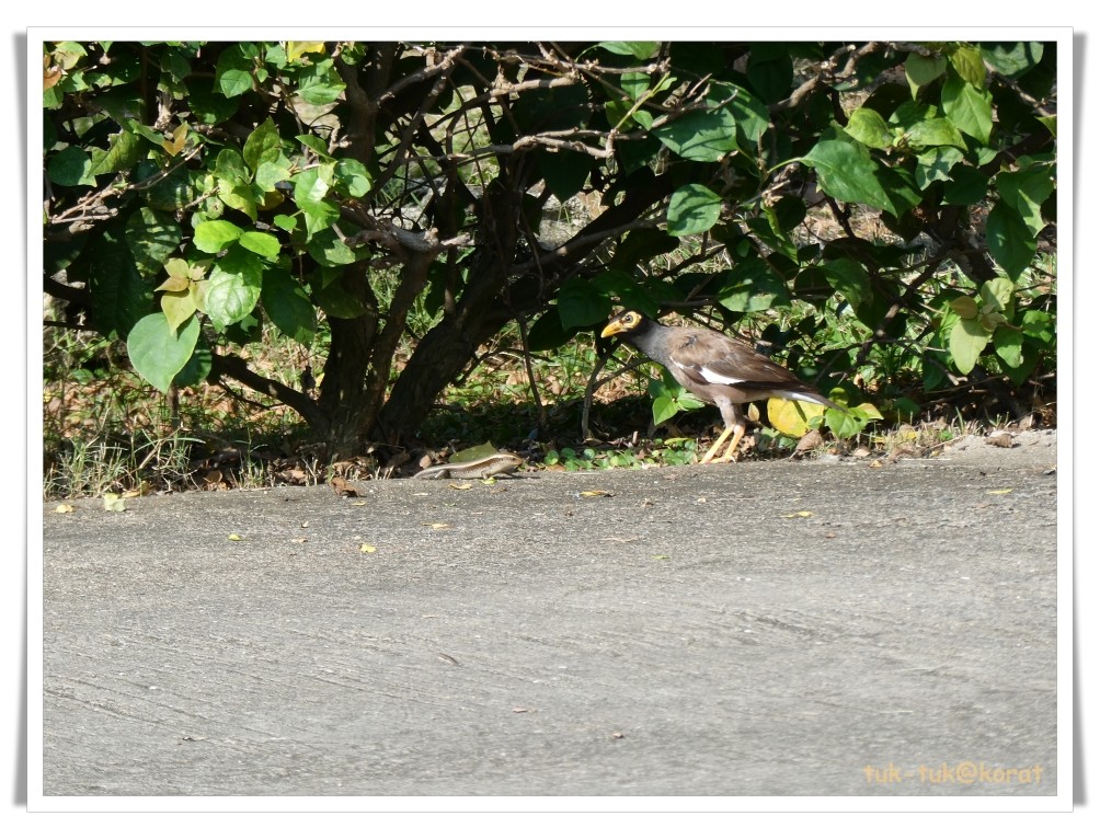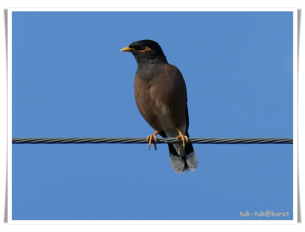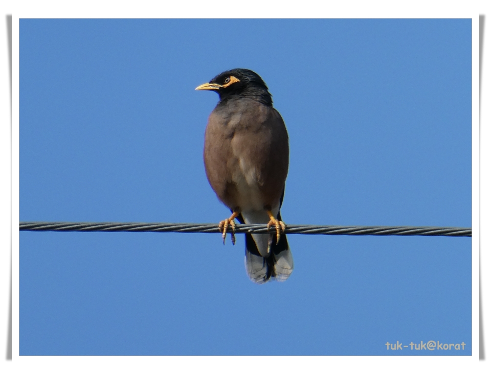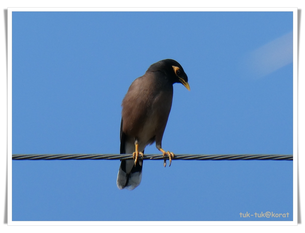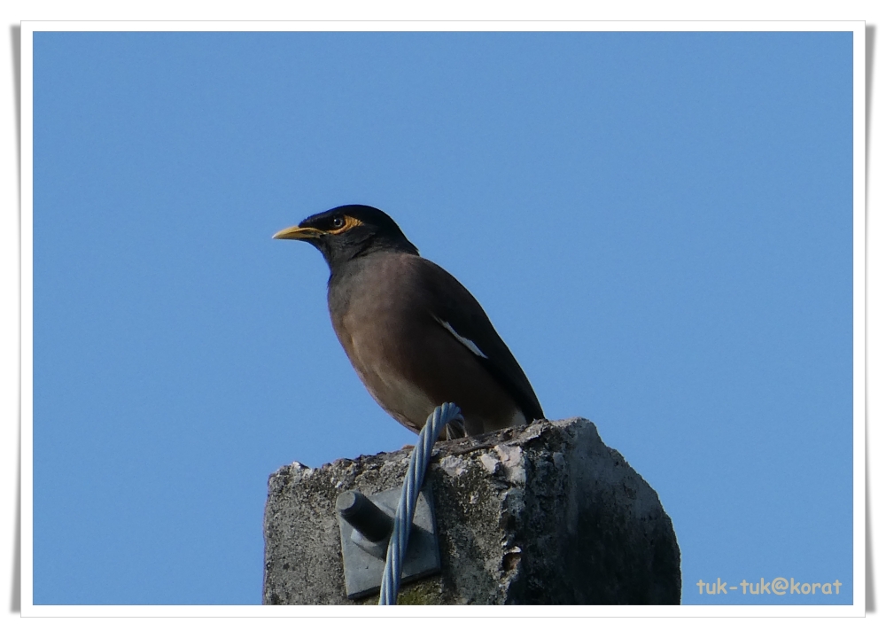 เอี้ยงสาริกา มีชื่อฝรั่งว่า Common Myna (Mynas สามารถร้องเลียนเสียงคนได้)