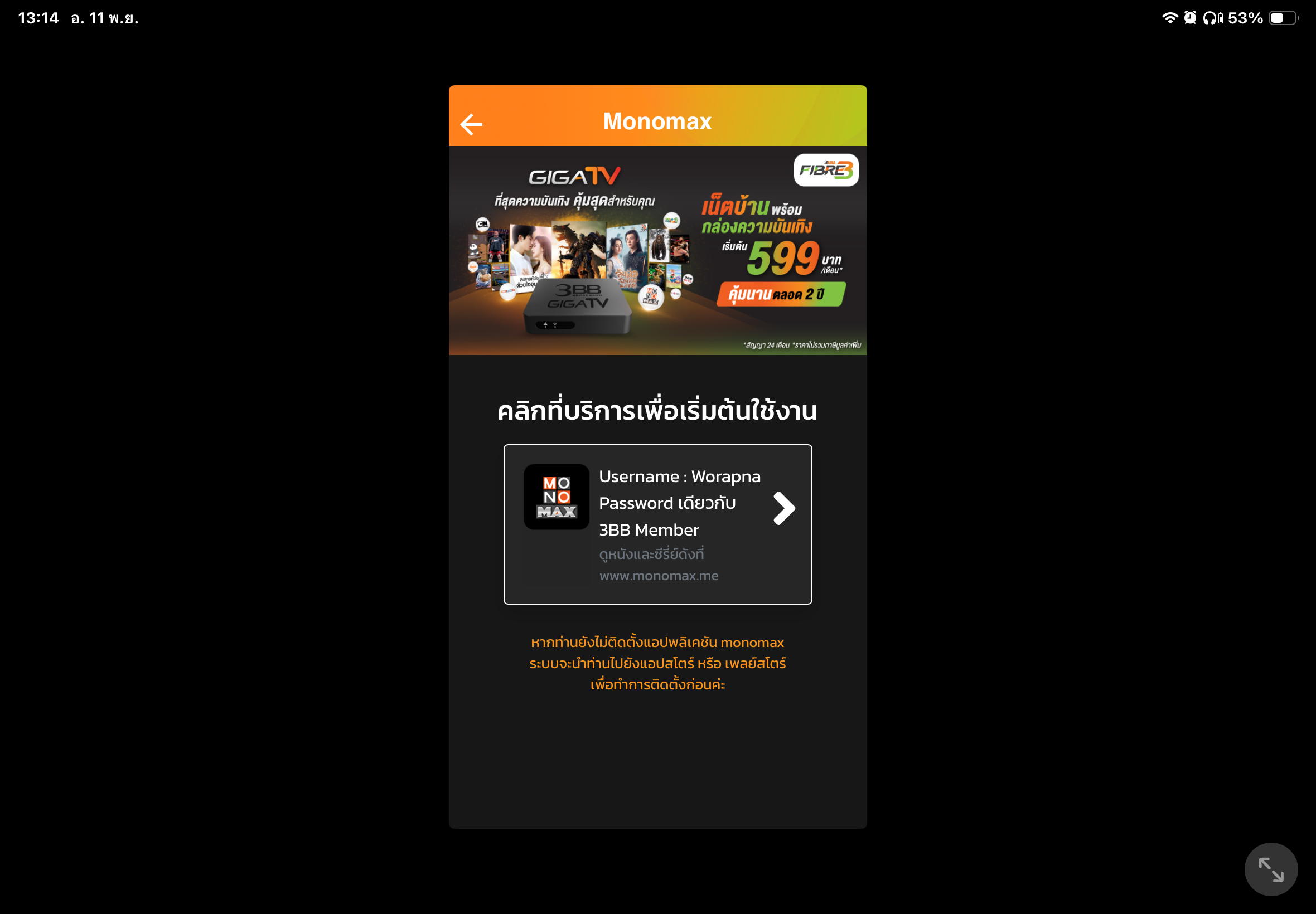 เข้าแอปดูMONOMAX 3bb ไม่ได้