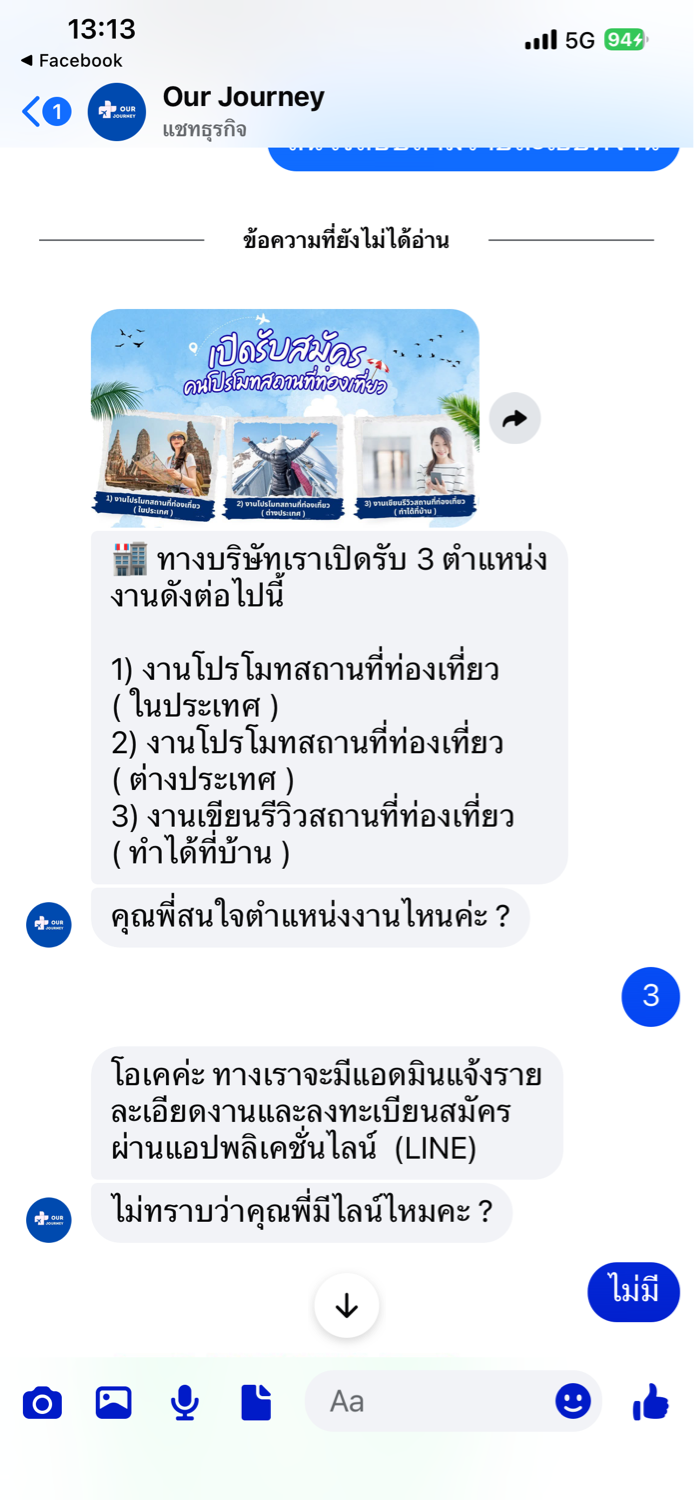มีคลิป มีรูปถ่ายสถานที่ท่องเที่ยวสวยงาม มีคนถามเรื่องสมัครงานในโฆษณาเยอะมาก แต่ทักเฟสแล้วแอดไลน์ ไม่รู้มีคนให้ข้อมูลเขาไปถึงไหนกันบ้างหลักๆก็ตามแนบเลย