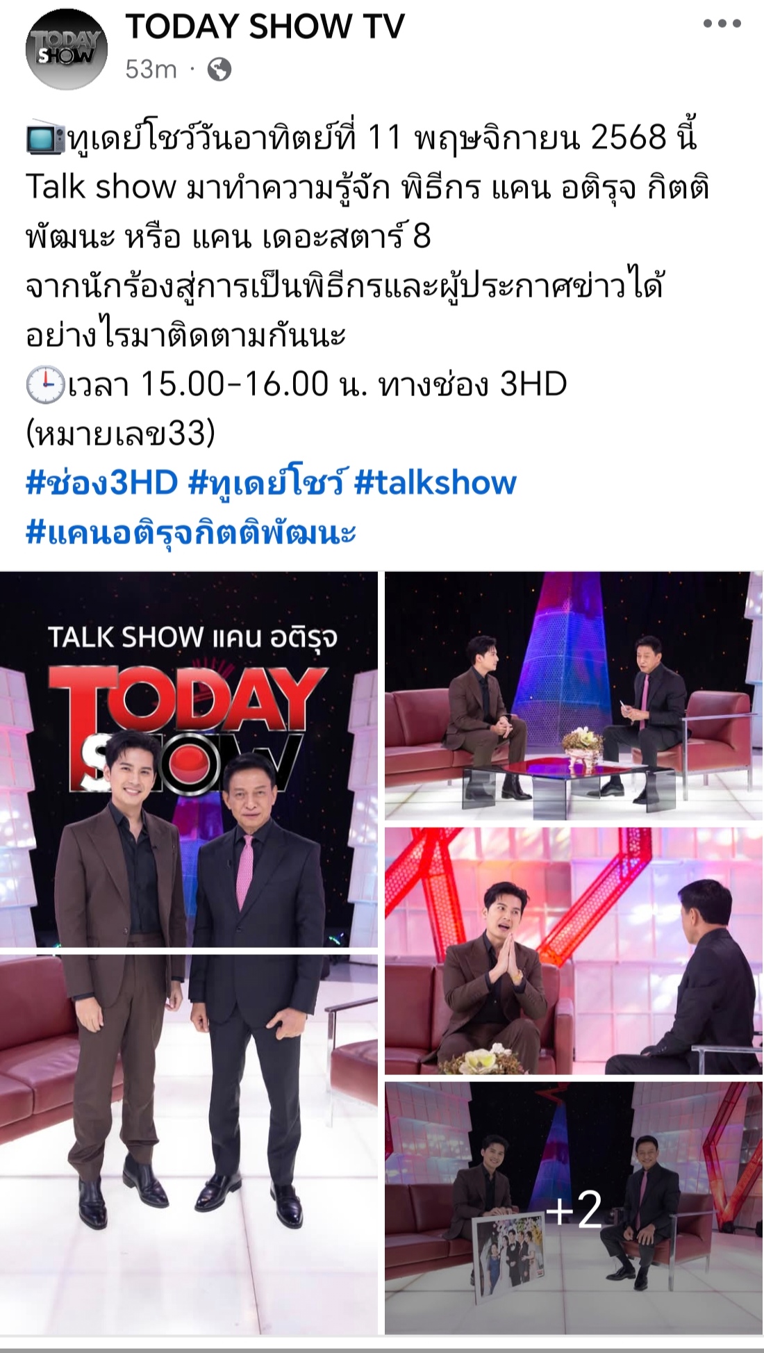 รายการ today show 16 พ.ย. 68 พบกับ แคน อติรุจ กิตติพัฒนะ หรือ แคน เดอะสตาร์ 8