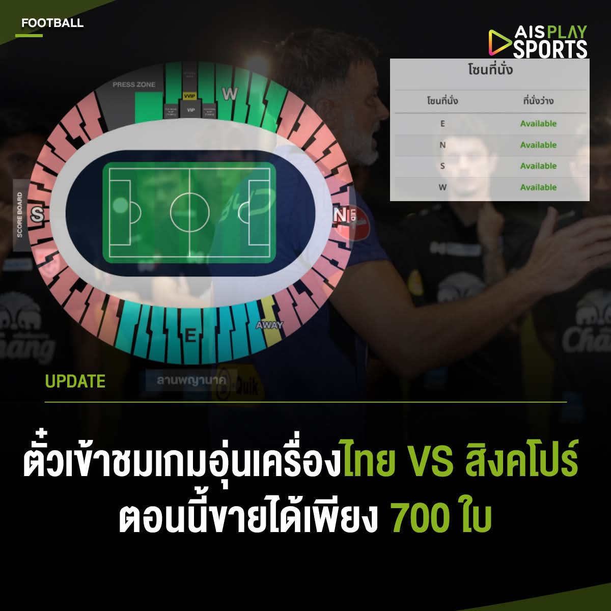 #Update : ไทยทิคเก็ตเมเจอร์ เผยยอดจองตั๋วเข้าชม ทีมชาติไทย vs สิงคโปร์ ตอนนี้ขายได้ราว 700 ใบ!