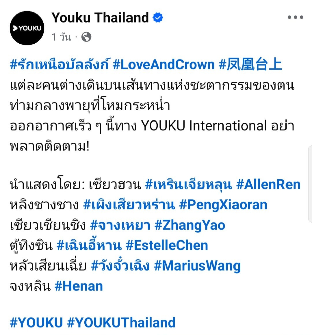 📌 เร็วๆ นี้ 👑💞 #รักเหนือบัลลังก์ #LoveAndCrown #凤凰台上 🔴 #YOUKU International
