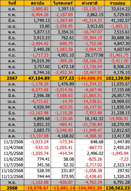 Sinthorn Summary 11/11/2568 : ต่างชาติขายสุทธิ -2,438.65 ลบ.
