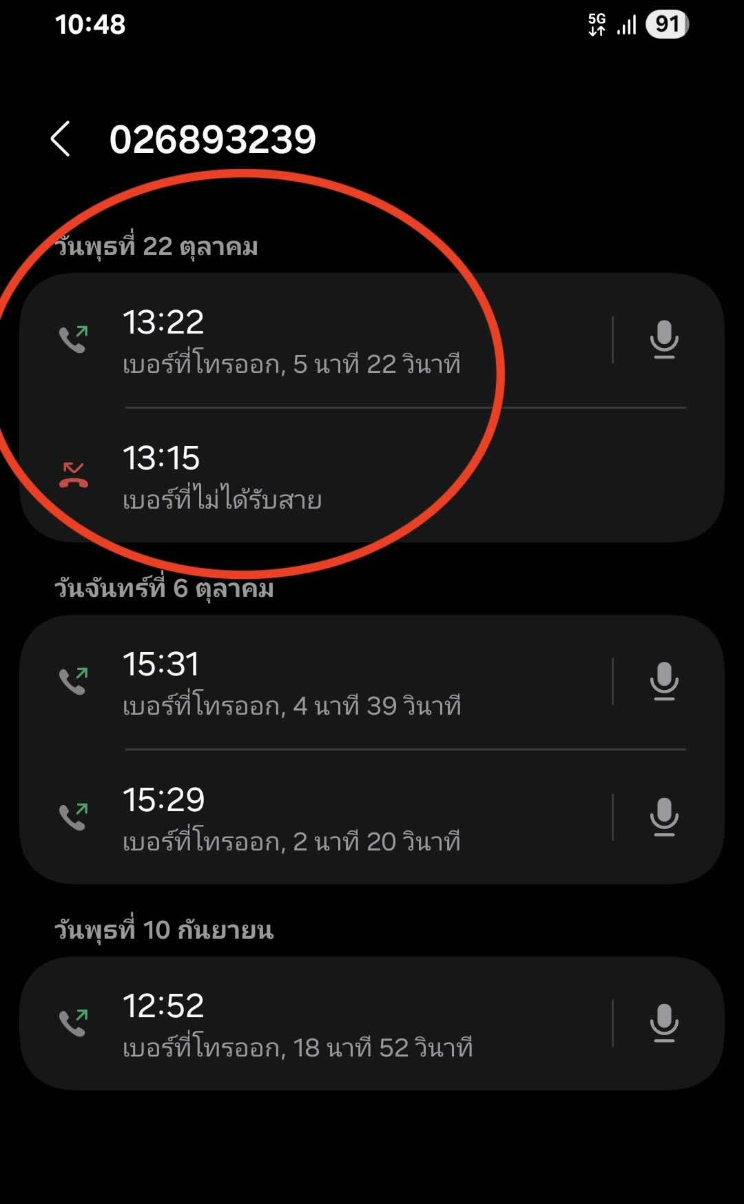 ผมจึงได้ย้อนไปเช็คเบอร์โทรศัพท์ มีการติดต่อมาจริง***หนึ่งครั้ง*** แล้วผมก็โทรกลับไป รอสาย 5 นาที 22 วิ แต่ไม่มีคนรับสาย