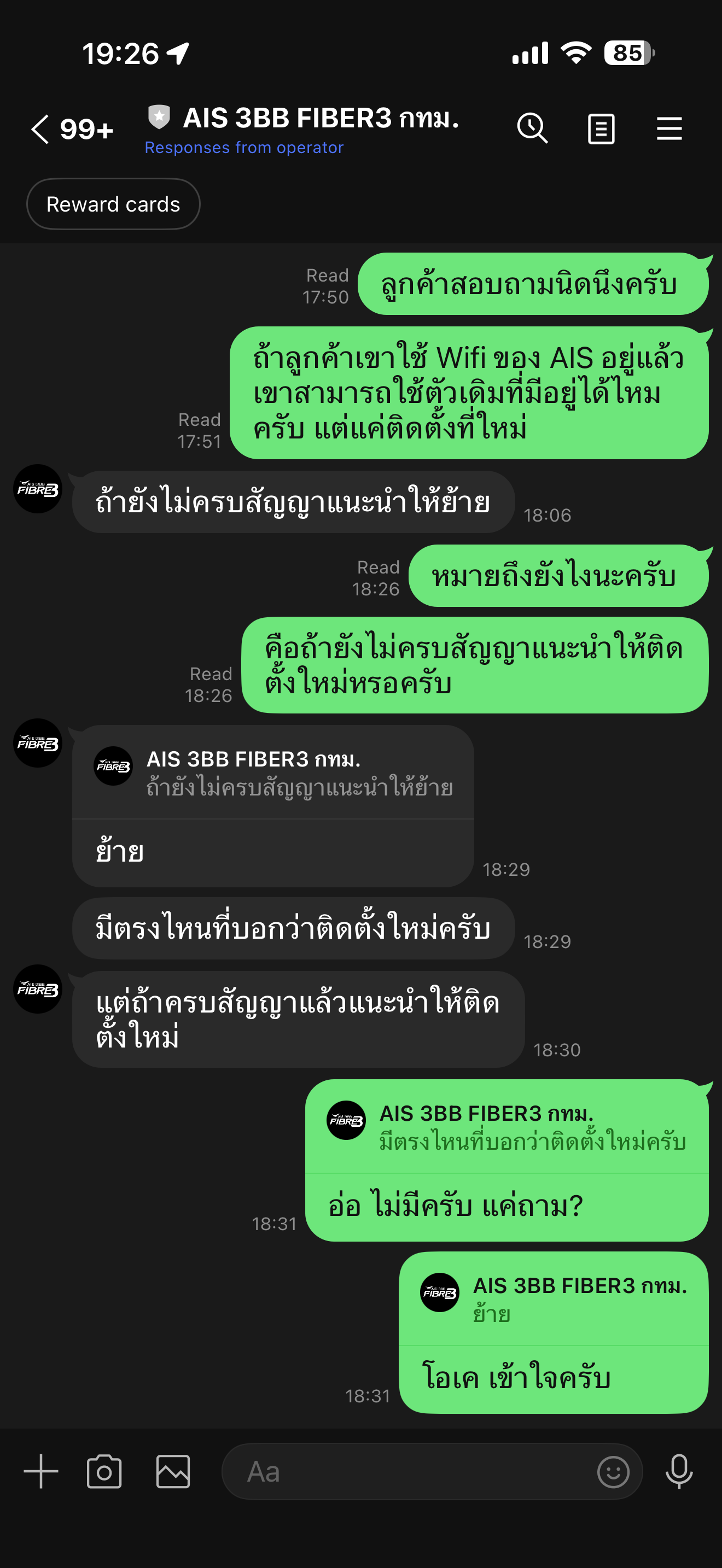 ประสบการณ์เจอแอดมินตอบแบบ ไม่มี Mindset ในการทำงานบริการของเครือข่าย AIS : เรื่องมีอยู่ว่าเราได้ติดต่อไปทางฝ่ายของเพจใน LINE AIS 3BB เพื่อจะติดต่อช่วยเหลือติดตั้ง Wi-Fi ให้กับลูกค้าในฐานะที่เราเป็นเอเจ้นอสังหาเคยทำงานเพื่อจะติดต่อช่วยเหลือติดตั้ง Wi-Fi ให้กับลูกค้า เคยทำงานกับ AIS มาหลายครั้ง แต่ก็ไม่คิดว่าจะมาเจอประสบการณ์ที่นี้กับการตอบคำถามของแอดมินในค่ายอินเตอร์เน็ตที่มีคนใช้บริการ ที่คิดว่าก็เยอะพอสมควรในประเทศไทย อยากให้เจ้าหน้าที่ฝ่ายที่ดูแลแอดมินหรือเมเนเจอร์ช่วยตรวจสอบและดำเนินการและทำอะไรสักอย่างกับสิ่งที่เกิดขึ้นกับการพูดจาของพนักงานท่านนี้ด้วย ไม่ว่าคนนี้จะเป็นใครแต่อยากให้เมเนเจอร์หรือคนที่เกี่ยวข้องช่วยอบรมสั่งสอนด้วย ไม่ว่าเขาจะทำงานกับใครหรือคนคนนั้นจะคือใครในเมื่อคุณทำงานบริการอยากให้เข้าใจถึงหน้าที่การงาน ณ ตรงนี้ด้วยว่าควรปฏิบัติหน้าที่ในการทำงานบริการ กับลูกค้า อย่าง ( การที่เราถามซ้ำ เพราะว่าเราไม่มั่นใจกับสิ่งที่เราอ่านเราเป็นคนที่ต้องถามซ้ำเพื่อที่อยากจะทราบว่าฉันเข้าใจในสิ่งที่อ่านและเข้าใจตรงกัน เราไม่ได้มีเจตนาที่จะมาก่อกวนแต่อย่างใด ) ต่อไมีลูกขอไม่ร่วมงานด้วย และจะบอกต่อกับเอเจนท์หลายท่านว่าถ้าเลือกได้ให้ทำงานกับค้ายอื่น นะครับ ขอบคุณคขอให้เป็นวันที่ดีของทุกคน.