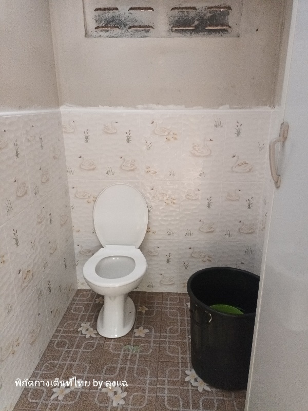 ห้องน้ำไกลซัก 150 ม. เพราะผมอยู่ในสุดติดรั้ว แต่ปีหน้าอาจมีเพิ่ม ห้องน้ำง่ายๆ แต่สะอาด มี 6 ห้อง เป็นนั่งยอง 5 ห้อง ห้องชักโครกกลอนใส่ประตูไม่มี ผมเตรียมเชือกมาผูกเรียบร้อย ที่จริง ห้องอาบน้ำที่มีป้ายบอกมี 2 ห้อง เข้าใจว่าน้ำจะสะอาดกว่าอีก 4 ห้อง
