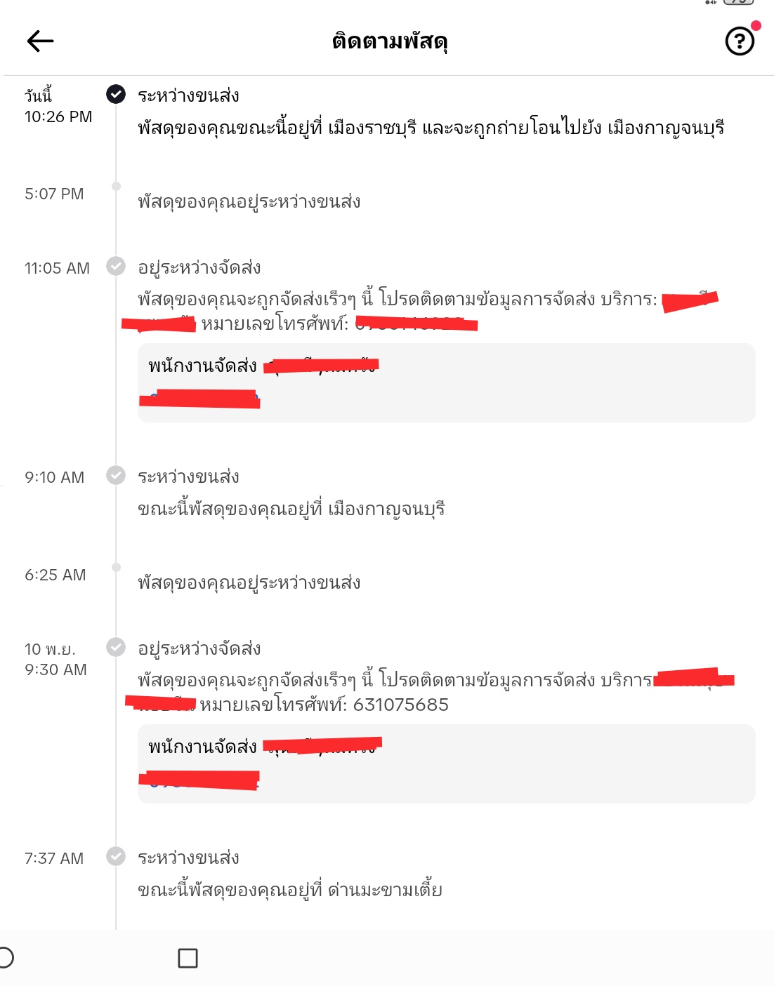 ขอติดตามพัสดุค่ะ สถานะพัสดุค้างมาหลายวันแล้ว ไม่เข้าใจว่าทำไมยังไม่มาส่งของ เลยกำหนดส่งของมา 2-3 วันแล้ว สถานะก็ไม่อัพเดท แย่มากๆเลยแบบนี้ เลขพัสดุ SHP5178381229 กับ VRIC4190417456