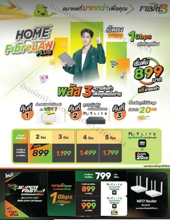 1. SUPER FAST PLUS7 Package 1000/1000 Mbps 899THB 24 Months with AIS PLAYBOX (ไม่มีซิมรายเดือนค่ะ)