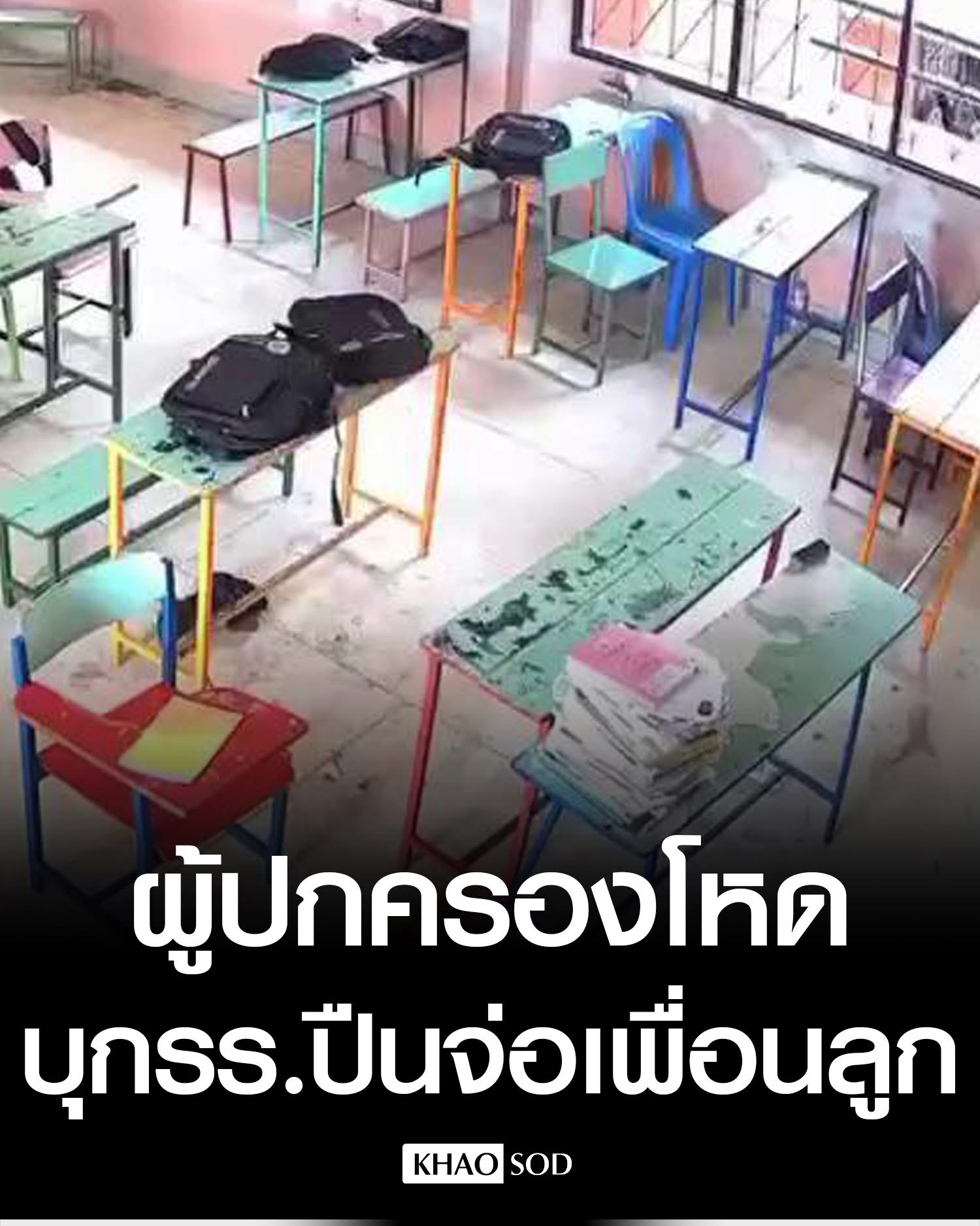วันที่ 11 พ.ย.68 ผู้สื่อข่าวรายงานว่า กล้องวงจรปิดในห้องเรียนของโรงเรียนแห่งหนึ่งใน อ.เมืองนครศรีธรรมราช จับภาพเหตุการณ์ผู้ปกครองของนักเรียนมัธยม อายุ 14 ปี ถืออาวุธปืนเข้าทำร้ายเด็กชายอายุ 14 ปี เพื่อนของลูกชายอย่างโหดร้ายทารุณ