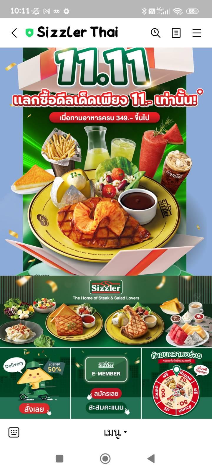 ไลน์เด้งมีโปร 11.11 พอดีครับ นึกว่า ได้สเต็กฟรี ปีนี้แถมเครื่องดื่ม ของว่างแทน