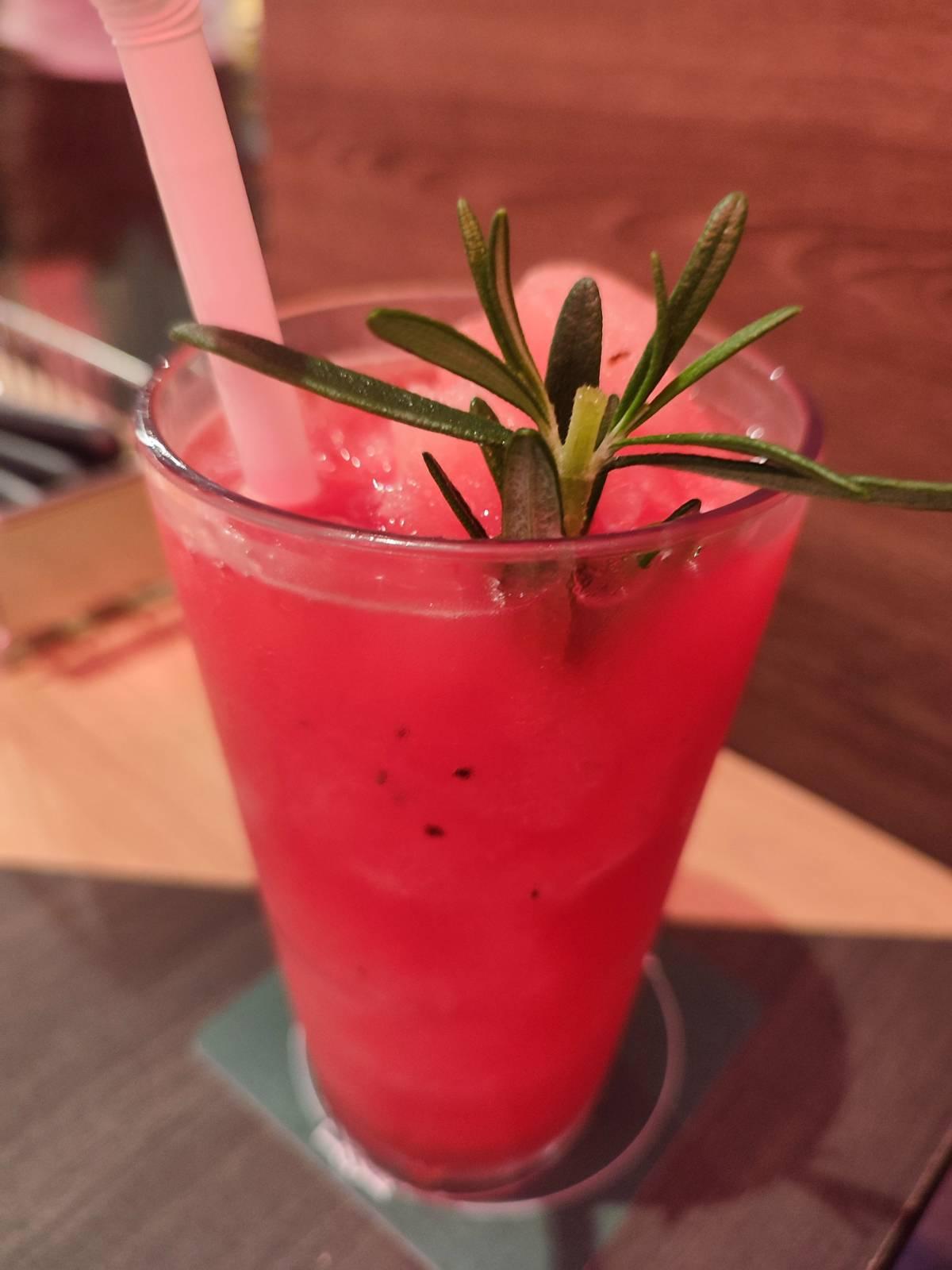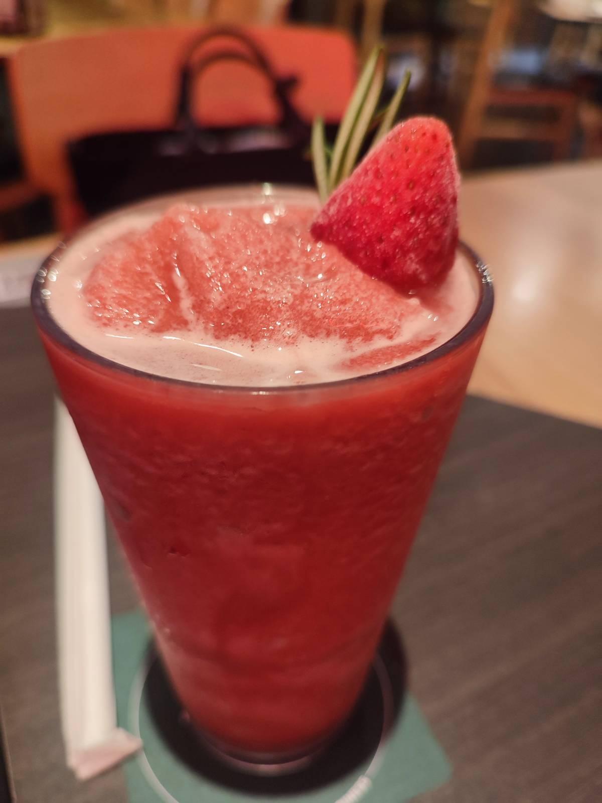 น้องพนักงานก็ทัก เปลี่ยนเป็นอย่างอื่นมั๊ย แต่ผมไม่กินของว่าง เลยได้ สมูทตี้ สตอเบอรี่ แตงโม มะนาว