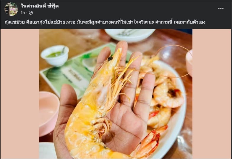 คำถาม : กุ้งแชบ๊วย คือเอากุ้งไปแช่บ๊วยเหรอ มันจะมีลูกค้าบางคนที่ไม่เข้าใจจริงๆนะ คำถามนี้ เจอมากับตัวเอง (จากโพสต้นทาง)