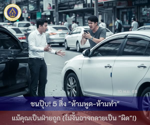 การบริหารจัดการ เมื่อเกิดอุบัติเหตุรถชน ; ชนปุ๊บ! 5 สิ่ง "ห้ามพูด-ห้ามทำ" แม้คุณเป็นฝ่ายถูก (ไม่งั้นอาจกลายเป็น "ผิด"!)