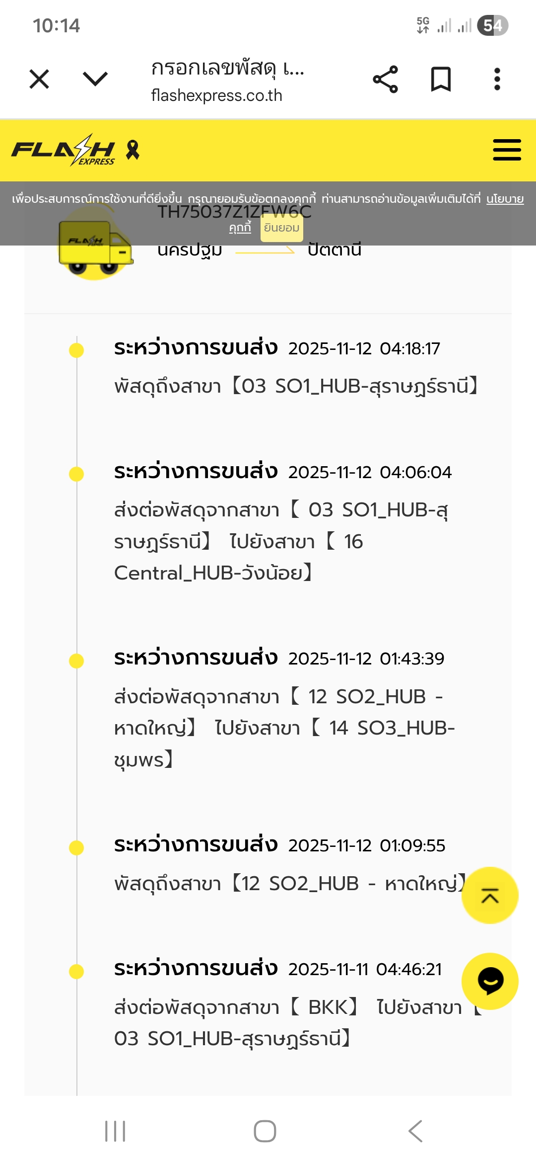 ของส่งมาหาดใหญ่แล้วไปชุมพรปลายทางปัตตานี งง