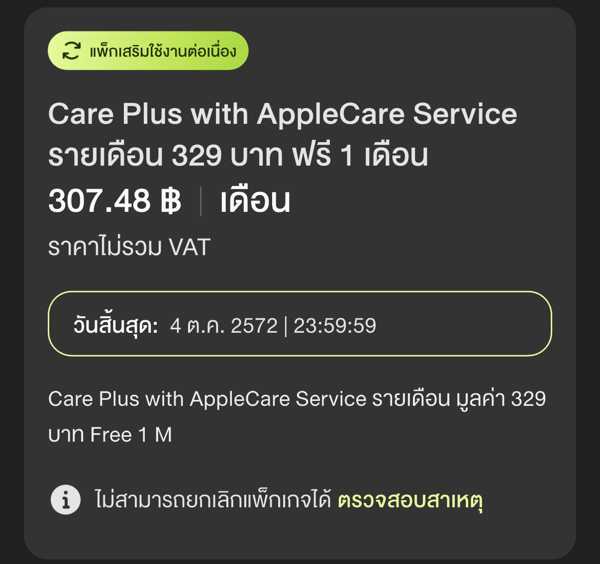 ยกเลิก care plus with apple care service ais