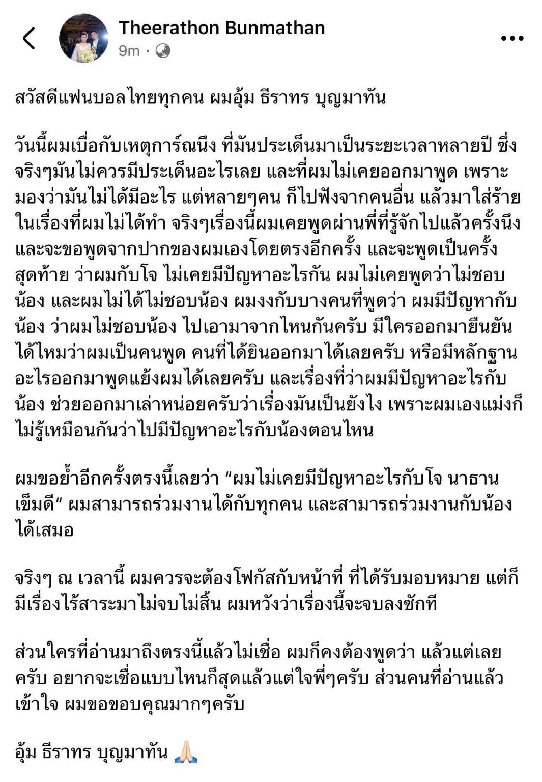 จากดราม่าของโกอุ้มกับโจนาธาน เข็มดี ในทีมชาติไทย อุ้มได้ออกมาชี้แจงแบบนี้ครับ