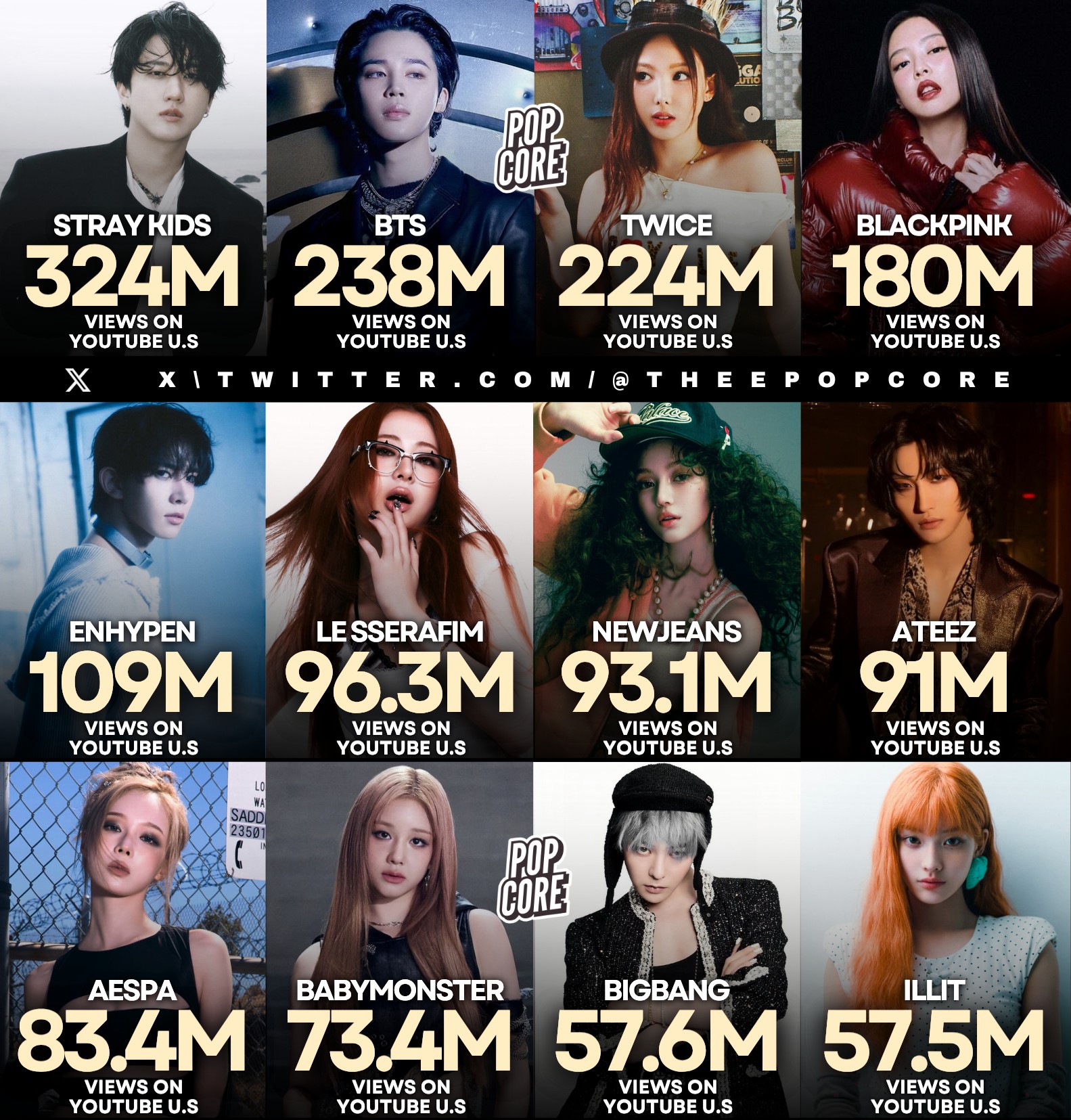 🔥 Stray Kids เป็นวงดนตรี K-pop อันดับ 1 ที่มียอดสตรีมสูงสุดบน YouTube ในสหรัฐอเมริกาในช่วง 12 เดือนที่ผ่านมา โดยมียอดสตรีม 324 ล้านครั้ง