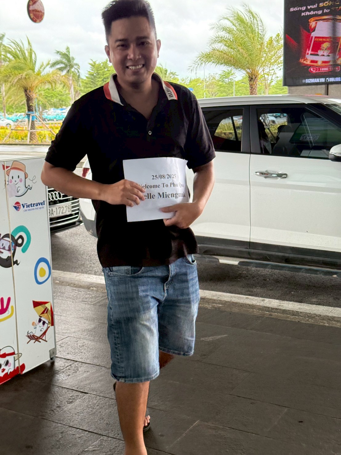 จะมีคนขับมาถือป้ายรอรับที่สนามบินเลยค่ะสะดวกสุดๆ (เจ้านี้เราเคยจองตอนไปญาจาง บริการดีราคาไม่แพง)