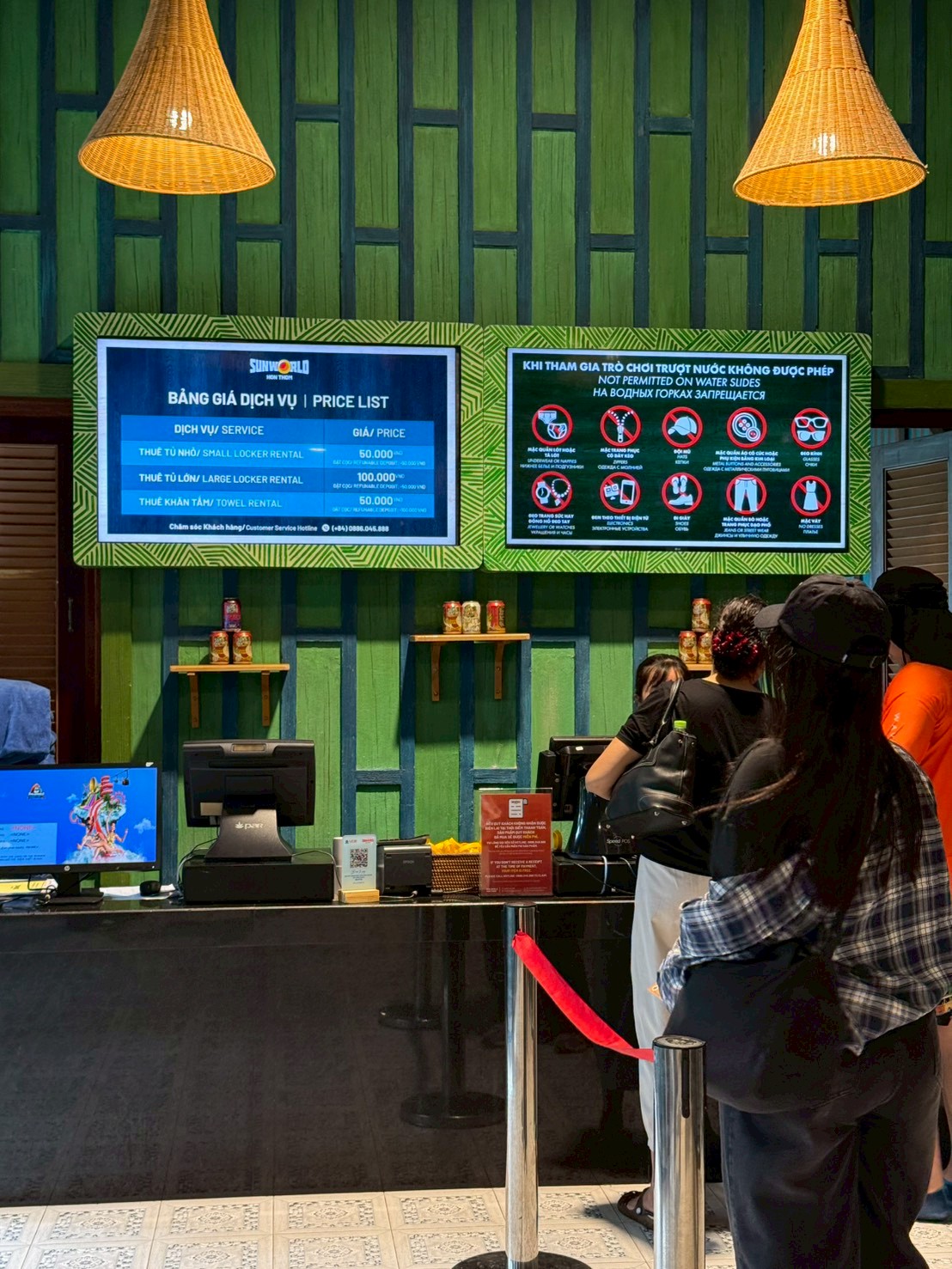 ฝากกระเป๋าและสัมภาระไปเล่นน้ำกัน ราคา Locker ตามป้ายเลยค่ะ 100,000 ดอง