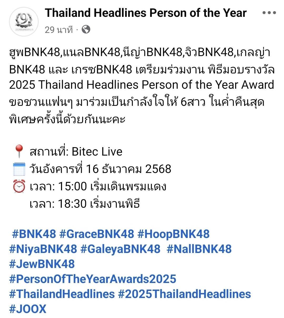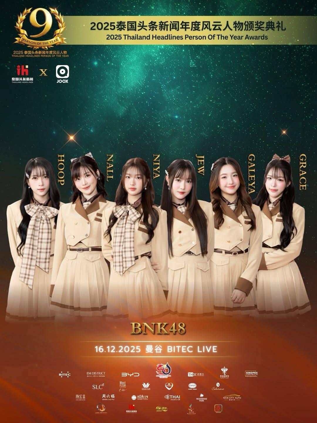 6 สมาชิก BNK48 ยูนิตทูตวัฒนธรรมไทย-จีน เข้าร่วมงานประกาศรางวัล Thailand Headlines Person of the Year Awards 2025