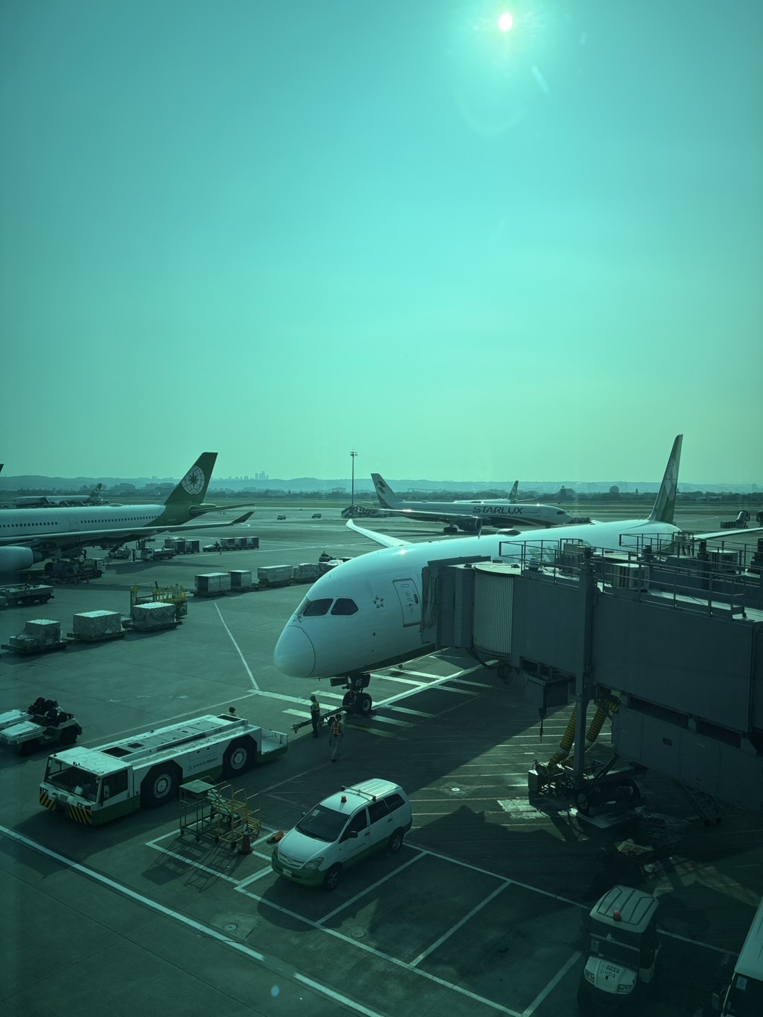 ไฟลท์แรกของพวกเรา ตี 1.35 จากสุวรรณภูมิไป ไต้หวัน เครื่องแลนด์ตรงเวลา 6.20 เช้าตรู่ มีเสิร์ฟข้าวบนเครื่อง 1 มื้อ