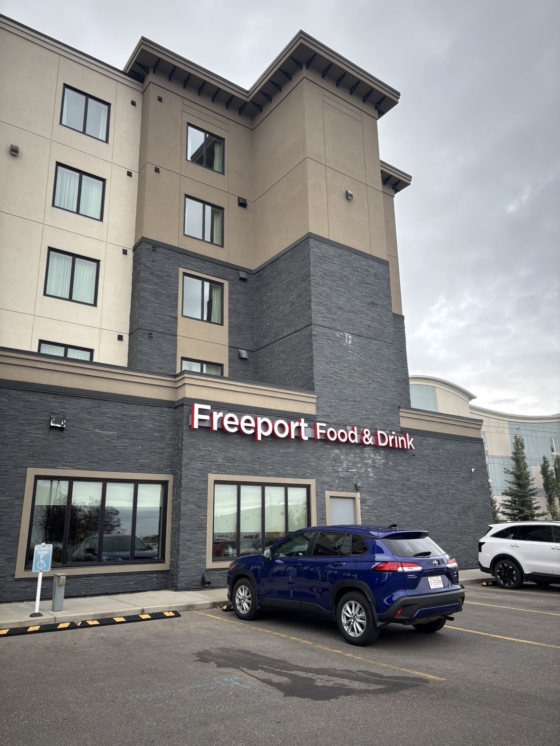 ถึง รร. รีบลงมาทานข้าวเย็น ที่ ร้าน Freeport เป็นร้านที่อยู่ด้านล่าง รร. ร้านอาหารแบบนี้ต้องให้ tips ด้วยนะ จขกท ให้ 15% แล้วก็ไม่ควรกวักมือเรียก ต้องให้พนักงานเดินมาหา หรือแบบสบตากัน กว่าจะจบมื้อ 555 เสียไป 75$ CAD