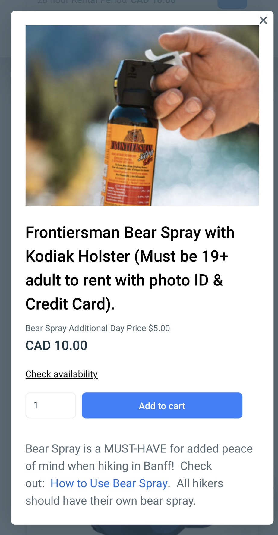 พอบ่ายๆ พวกเราก็ขับรถไป Canmore นัดรับ bear spray ไว้ 5 โมงเย็น ใครมาเที่ยวที่แคนาดาและมีแพลนเดินเขา แนะนำว่าต้องพกไว้ พวกเราเช่า วันละ 10 CAD ถ้าใครสนใจเช่าแบบ จขกท แนะนำร้านให้ได้ เจ้าของน่ารักมากๆ **รูปจากเว็บที่จขกท เช่า**