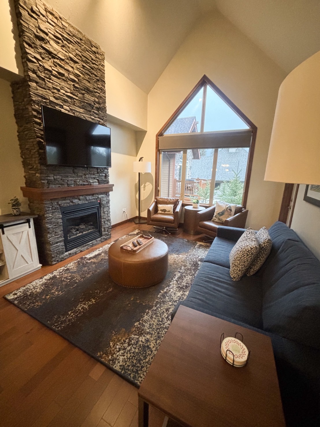 พวกเราจะพักกันที่ Canmore ทั้งหมด 5 คืน ที่พักชื่อ Stoneridge Mountain resort เป็นห้องแบบอพาร์ตเม้น ชั้นบนสุด มีห้องครัว ห้องนอน ห้องรับแขก เตาบาร์บีคิว ระเบียง มองออกไปจะเห็นวิว Three Sisters คืนละ 8,xxx บาท