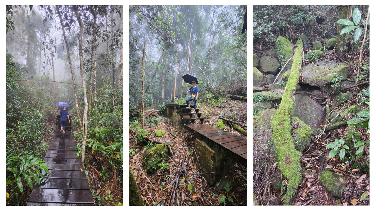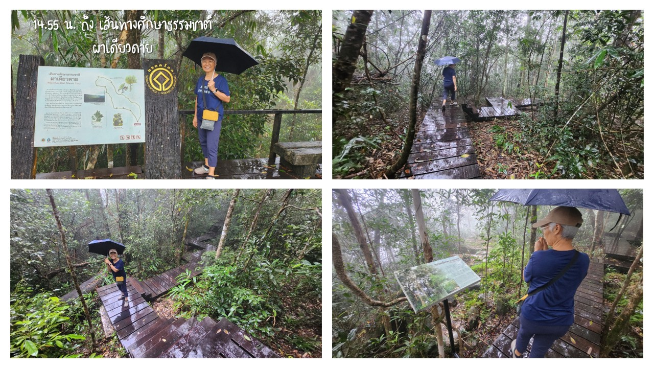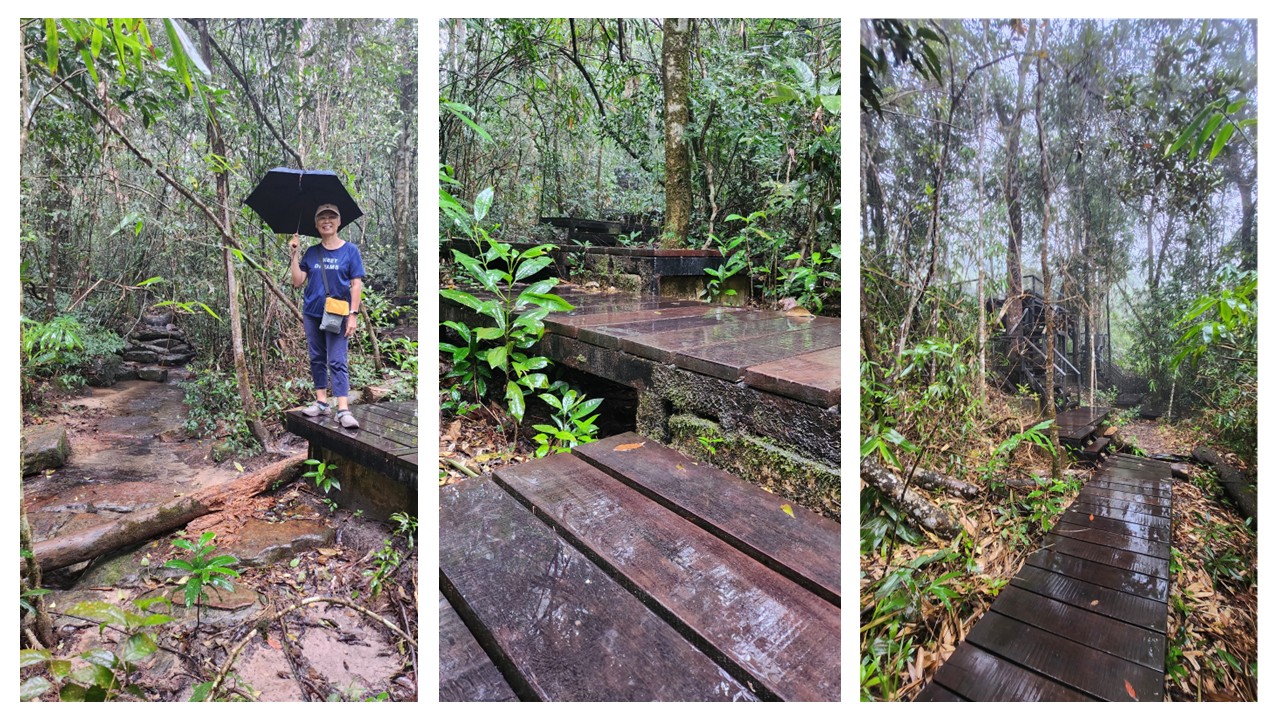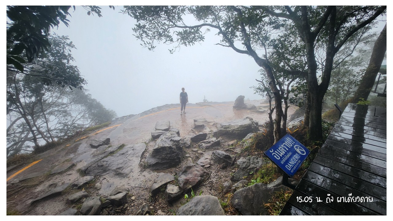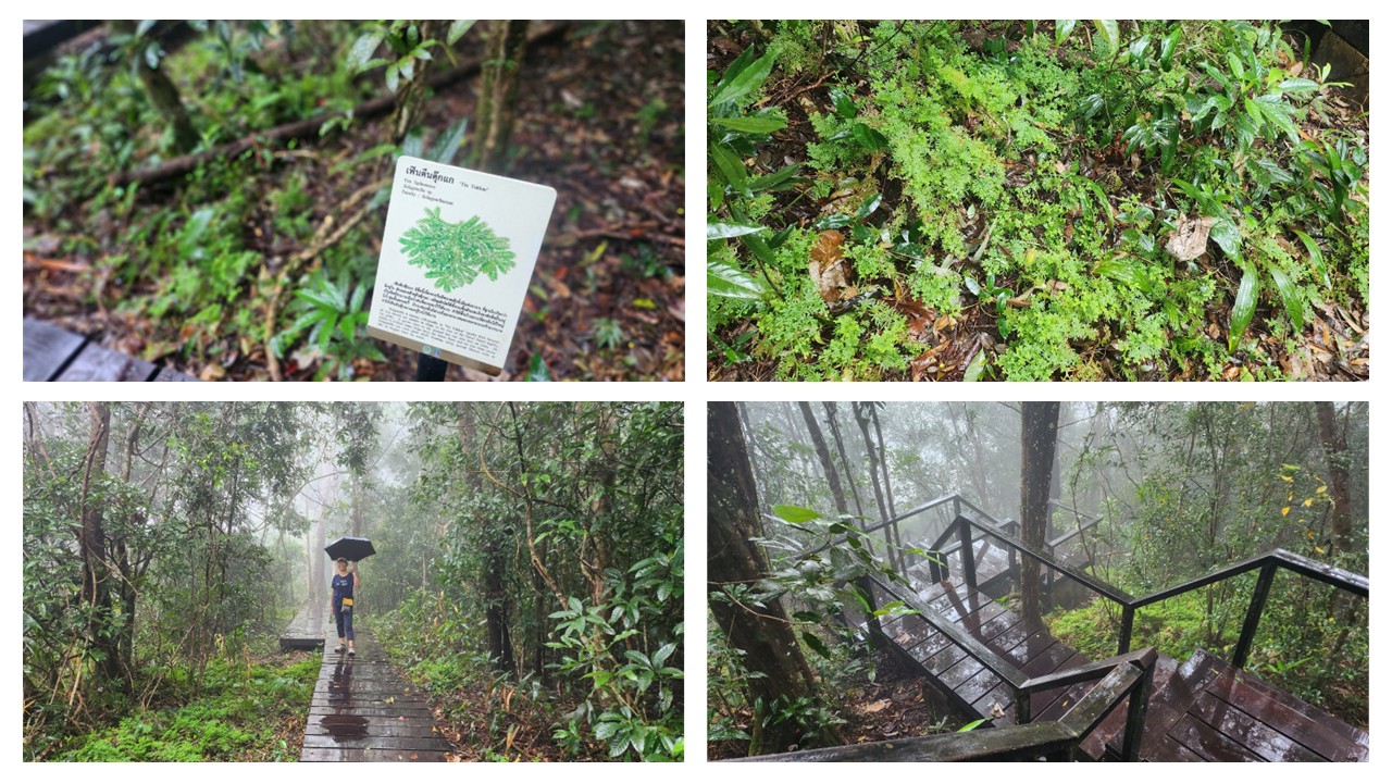 ฝนลงหนาเม็ดขึ้น ไม่เห็นวิว ทางเดินไม้สวย เดินง่าย