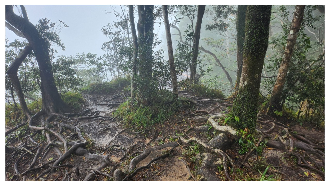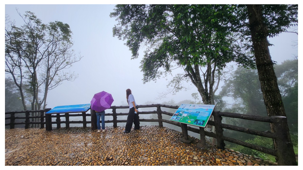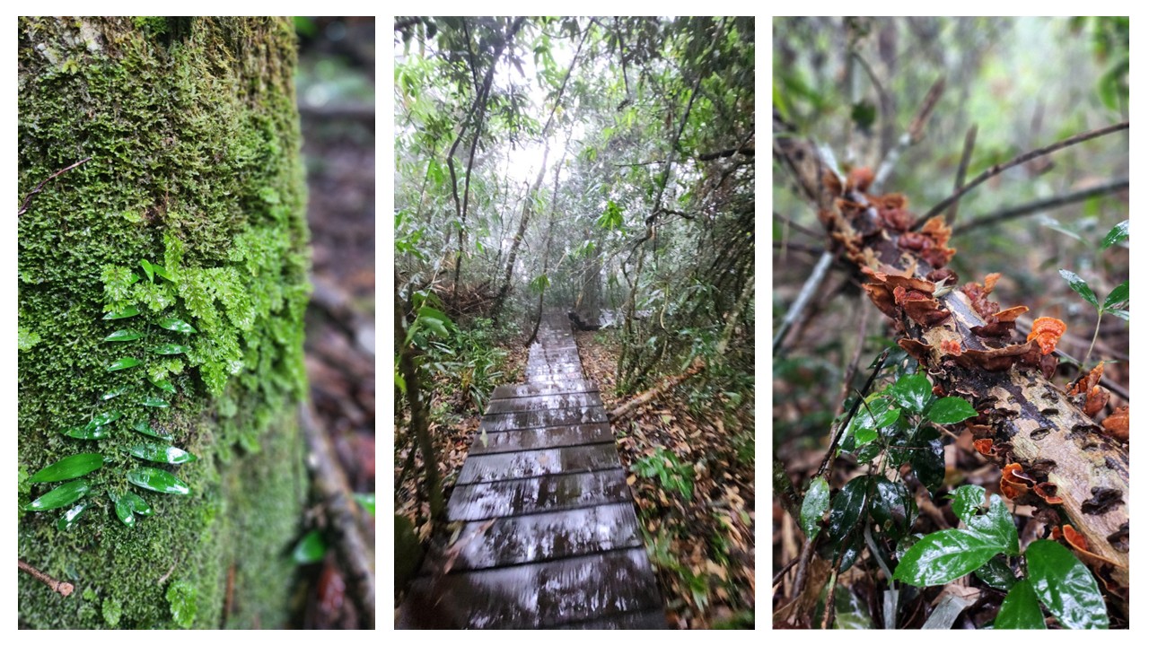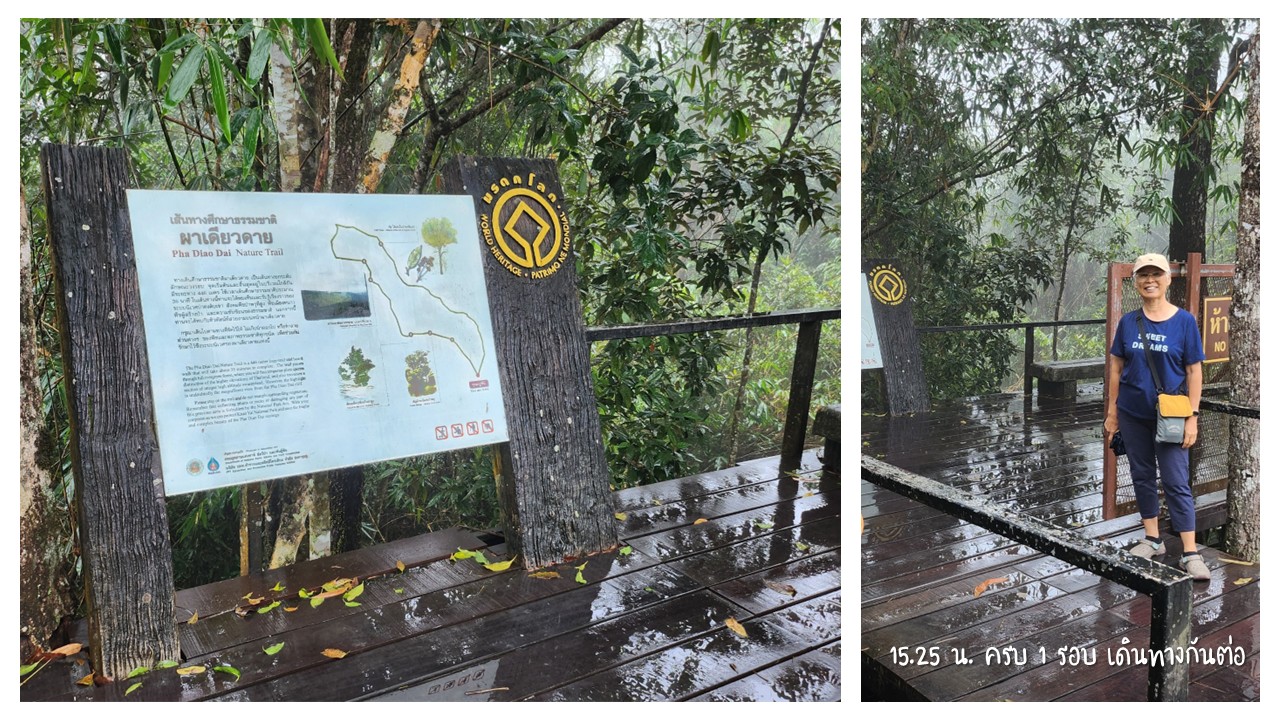 ฝนลงหนาเม็ดขึ้น ไม่เห็นวิว ทางเดินไม้สวย เดินง่าย