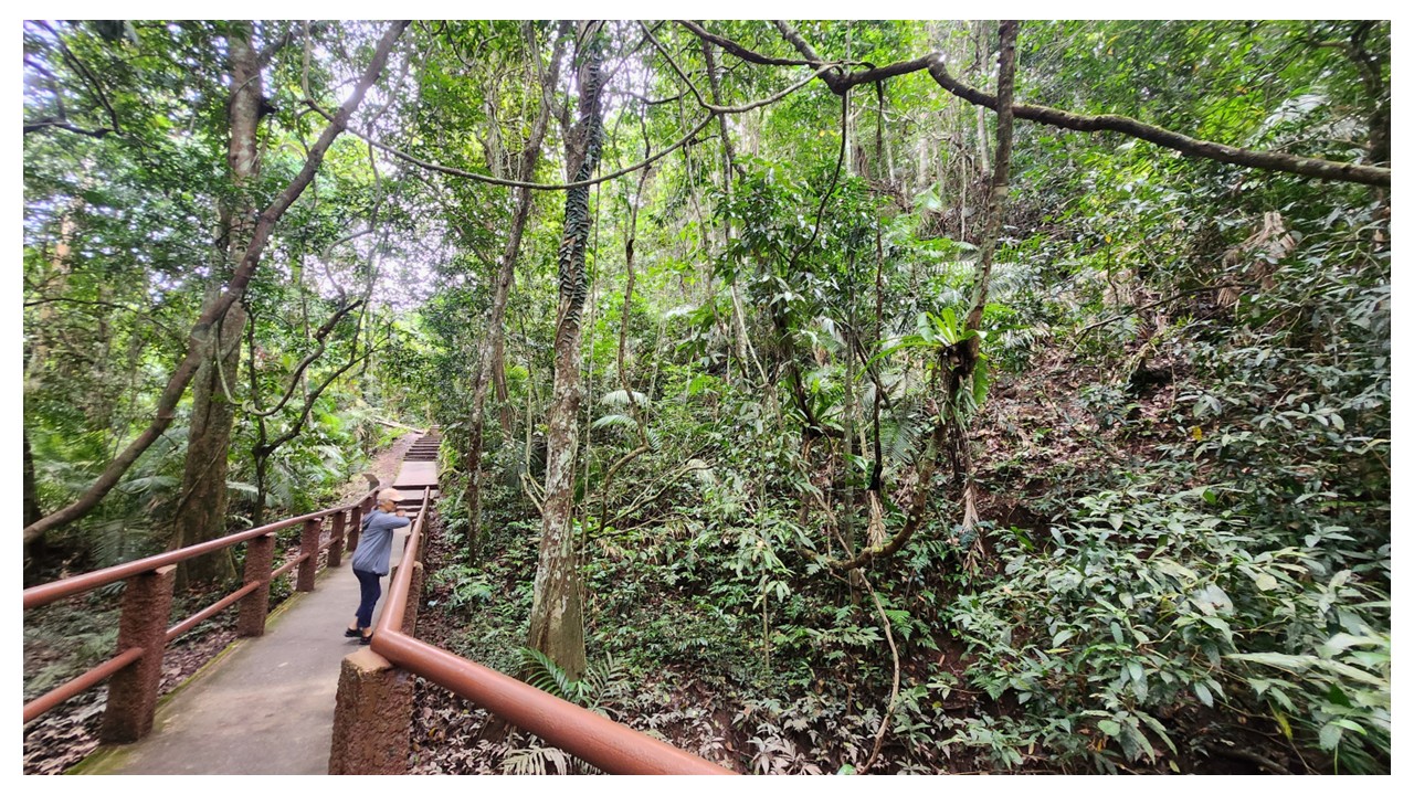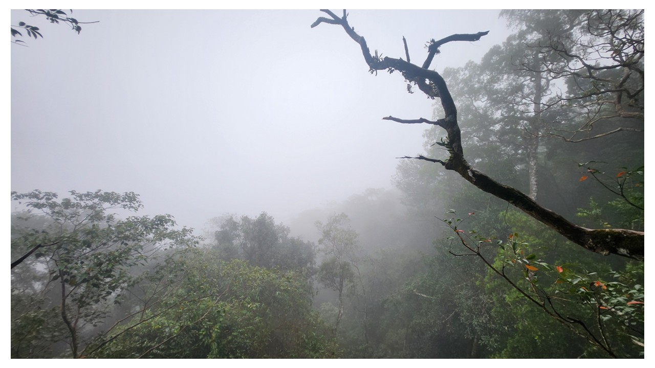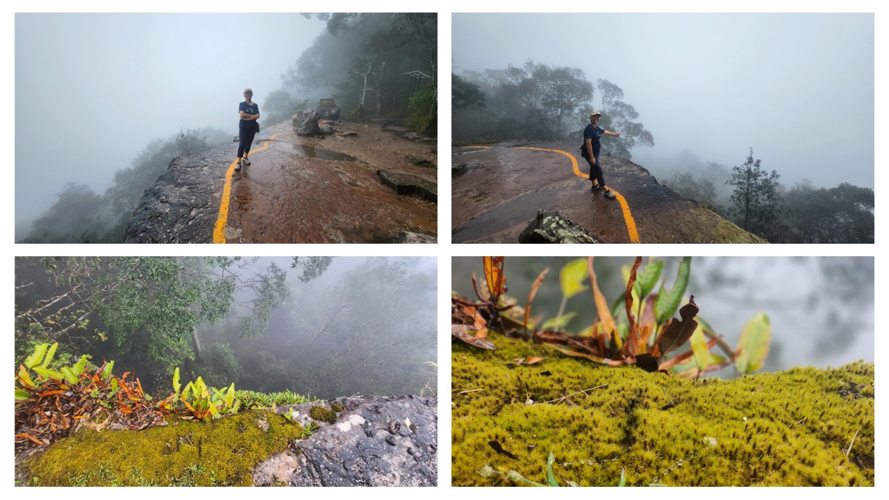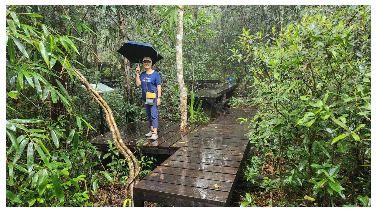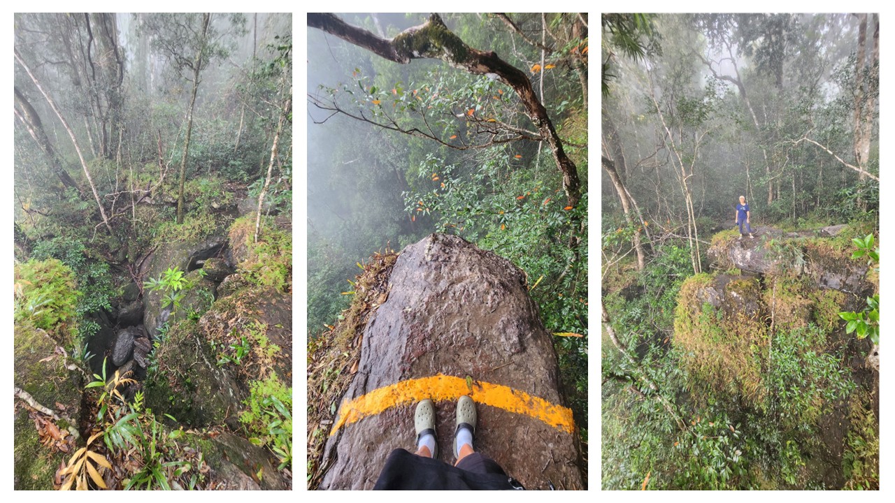 ฝนลงหนาเม็ดขึ้น ไม่เห็นวิว ทางเดินไม้สวย เดินง่าย