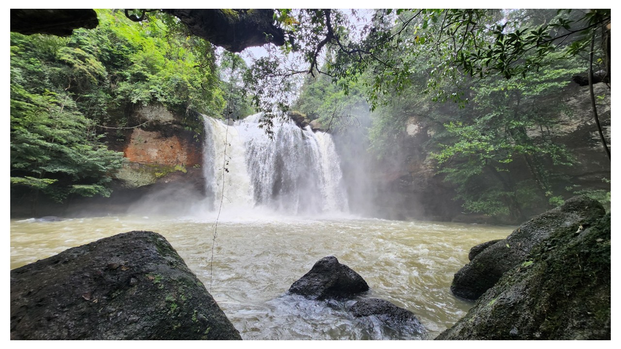 น้ำตกสูง สวย น้ำเยอะ ขึ้น/ลงบันไดชันช่วงใกล้น้ำตก