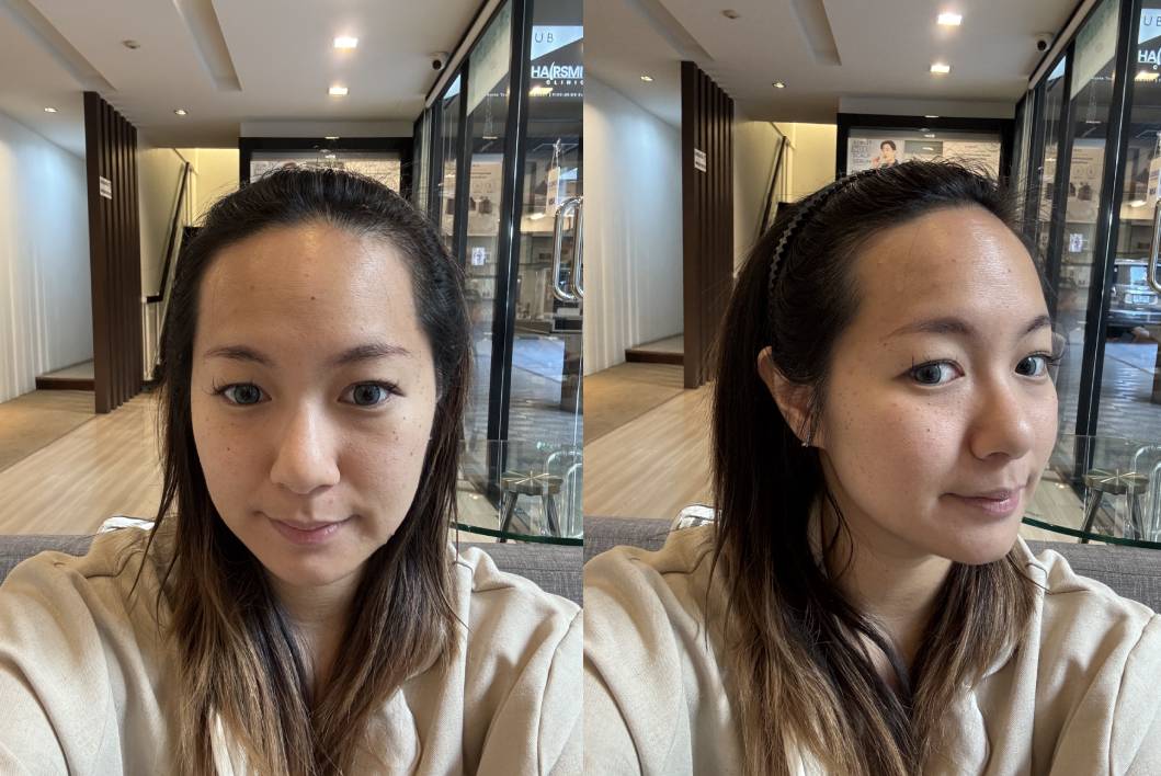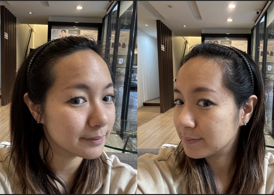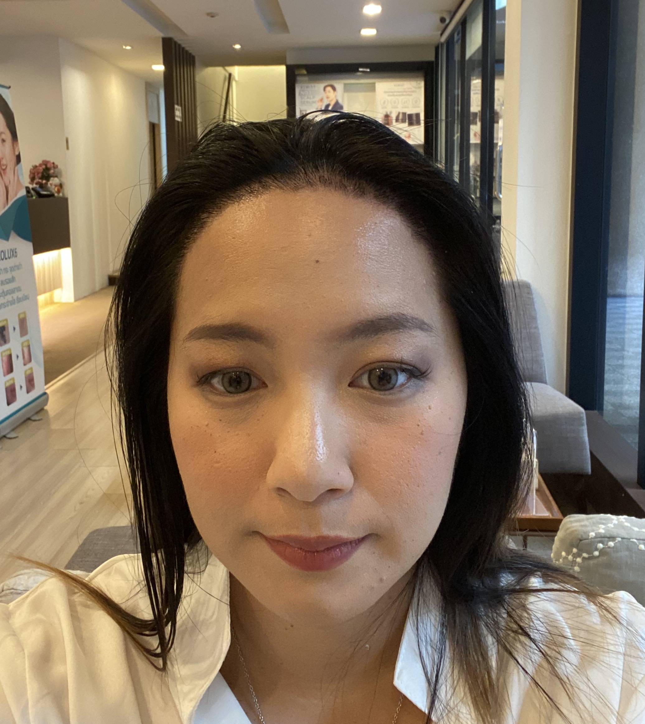 1 ปี แล้ว ผมขึ้นแน่นและเป็นธรรมชาติมาก จุดที่รู้สึกเปลี่ยนแปลงที่สุดคือตอนแต่งหน้าและทำผมค่ะ เมื่อก่อนเวลาเกล้าผมหรือรวบตึง ต้องพยายามปิดข้าง ๆ หน้าผาก เพราะกลัวเห็นแนวเว้า แต่ตอนนี้ไม่ต้องแล้วค่ะ พอมีแนวผมใหม่ที่โค้งรับหน้าพอดี เวลาแต่งหน้าแค่เบา ๆ หน้าก็ดูละมุนขึ้นโดยอัตโนมัติเลย เหมือนรีเฟซใหม่โดยไม่ต้องใช้ฟิลเตอร์