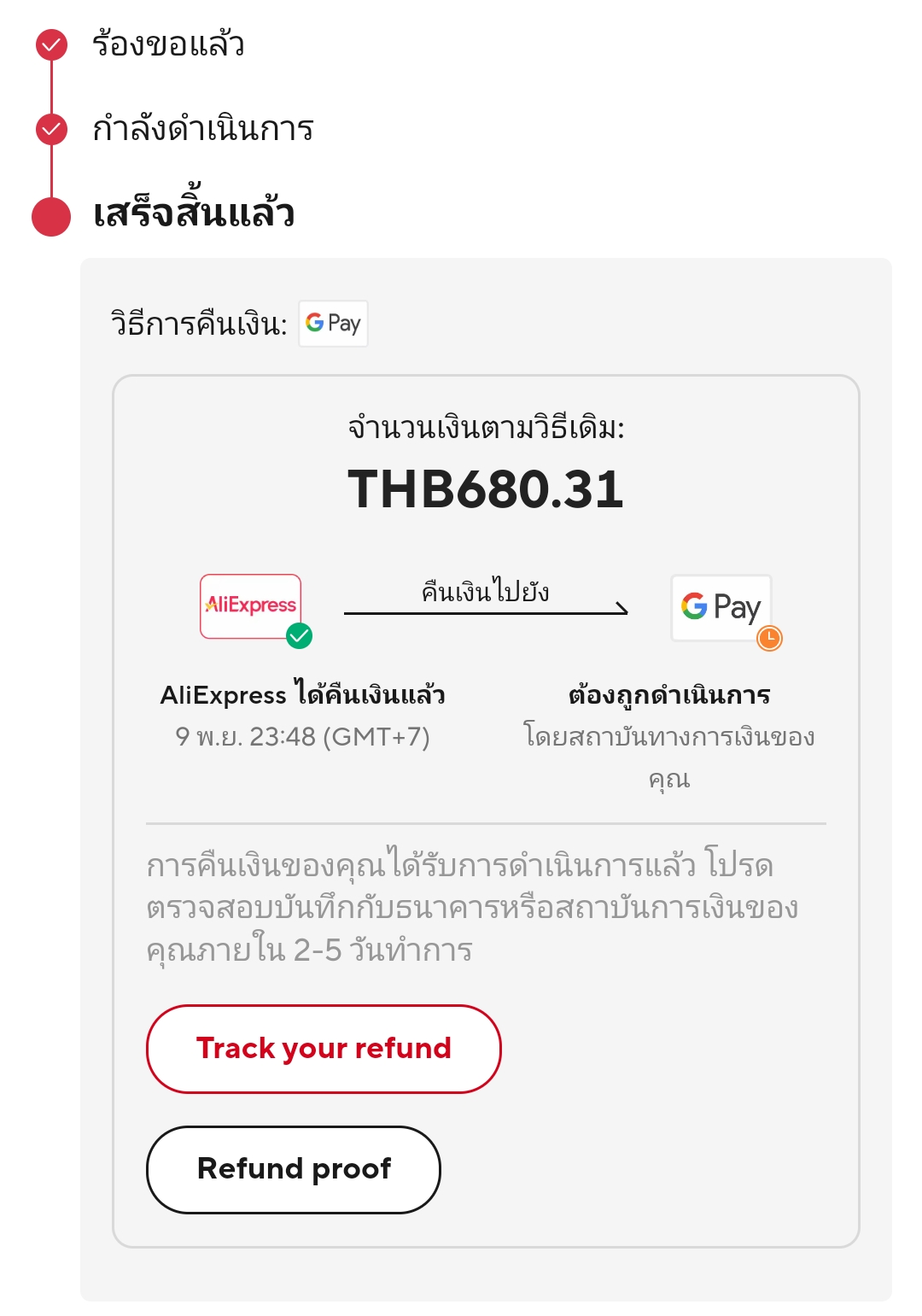 aliexpress คืนเงินผ่านgpayได้รึป่าวครับ