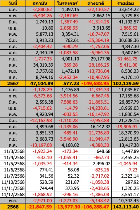 Sinthorn Summary 11/11/2568 : ต่างชาติขายสุทธิ -2,438.65 ลบ.