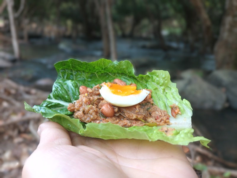 ใช้เวลาราวครึ่งชม.ก็เสร็จเรียบร้อย ยกออกมานั่งทำทรงริมน้ำเช่นเดิม น้อลๆ นอนใกล้ๆ กดดานนนนนลุงมาก แบ่งแยมโรลและลาบให้นิดหน่อย บรรยากาศริมลำธารดีมากๆ เลยครับ ชอบจริงๆ