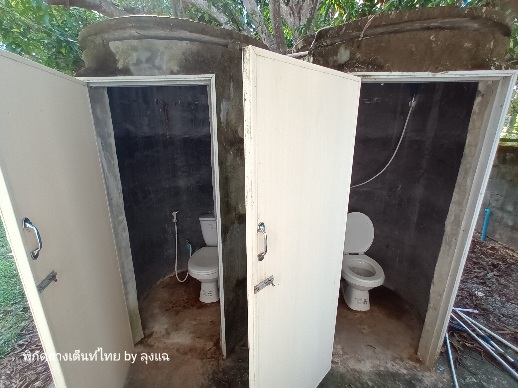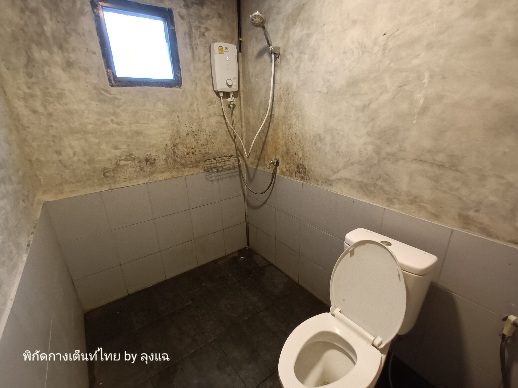 กลับมาเตรียมตัวไปอาบน้ำ แสงอาทิตย์เริ่มอ่อนแรงจะลับขอบฟ้า ฝั่งขวามือที่ผมกาง สวยงามครับ ห้องน้ำหลักดี สะอาด มีเครื่องทำน้ำอุ่น แต่เสีย ดีที่น้ำไม่เย็นนัก มีห้องน้ำและห้องสุขาสำรองด้วย เป็นบล็อคซีเมนต์ครับ
