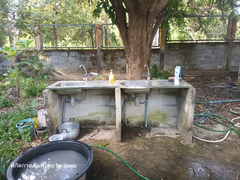 ยกไปล้างจาน ที่ล้างจานแถบหัองน้ำ ทำได้ดี มีที่ล้างและน้ำยาล้างจานให้ด้วย ดีจัง แต่ไม่มีหลังคาไว้หลบฝนนะครับ