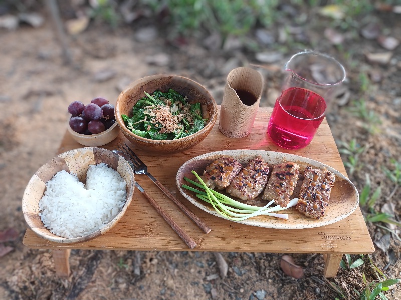 4 โมงกว่า ทำมื้อเที่ยง+มื้อเย็นดีกว่า ใช้เวลาราวครึ่งชม. ยกออกมานั่งทำทรงหน้าเต็นท์ รสชาดพอใช้ได้ อิ่มครับ