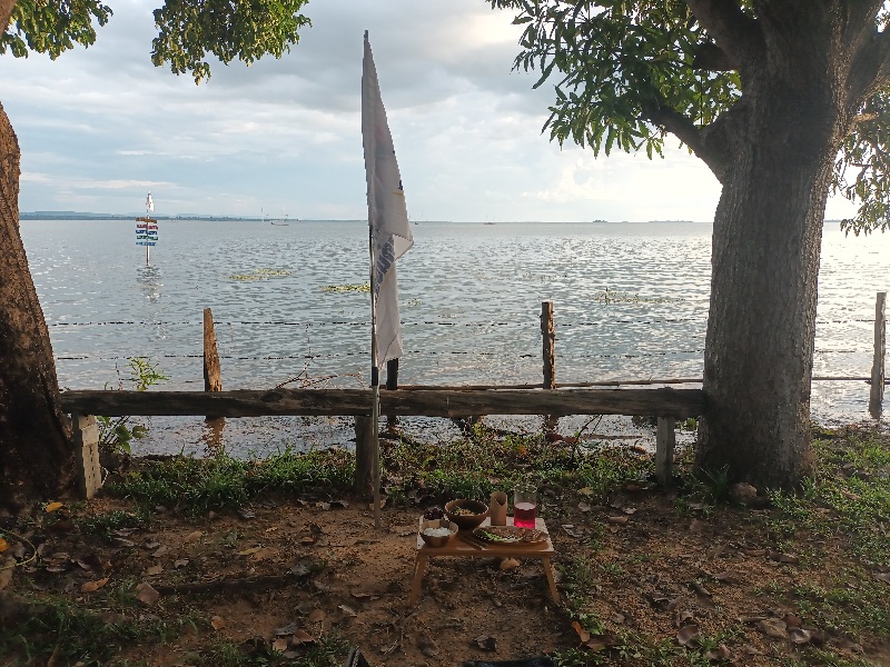 อุ่นซาละเปากินกะมะนาวโซดา รองท้องแค่นี้พอ แล้วนั่งๆ นอนๆ พักผ่อน มองน้ำแล้วมีความสุขจัง สายตกปลาก็น่าจะชอบ น้ำเต็มเปี่ยมติดริมน้ำแบบนี้ เจ้าของบอกเดือนเมย.น้ำจะลดลงมากจนไกลออกไปร้อยเมตรได้ ฝั่งขวามือไกลหลายร้อยเมตรเลยครับ