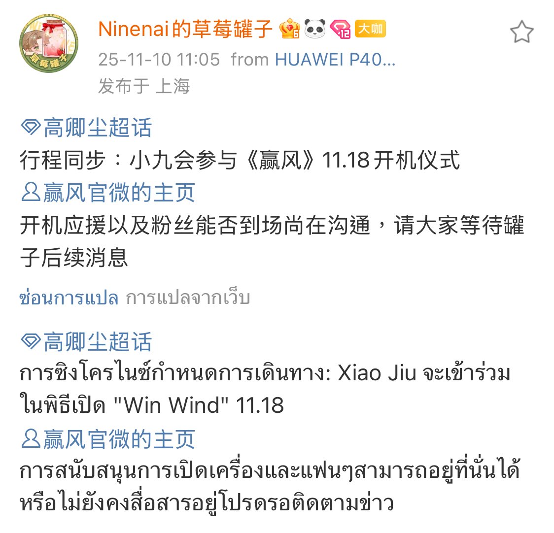 อันนี้แตง 🍉 ข่าวลือก่อนหน้านี้ ที่ยืนยันแล้วว่า 黄景瑜 และ 高卿尘 จะเข้าร่วมพิธีเปิดกล้องถ่ายทำซีรีส์เรื่อง 赢风