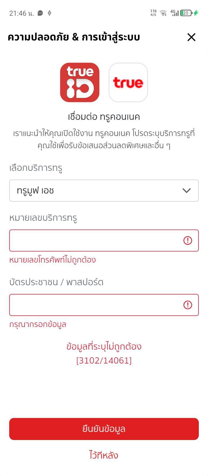 ผูกเลขบัตรประชากับ True ID ไม่ได้ครับ