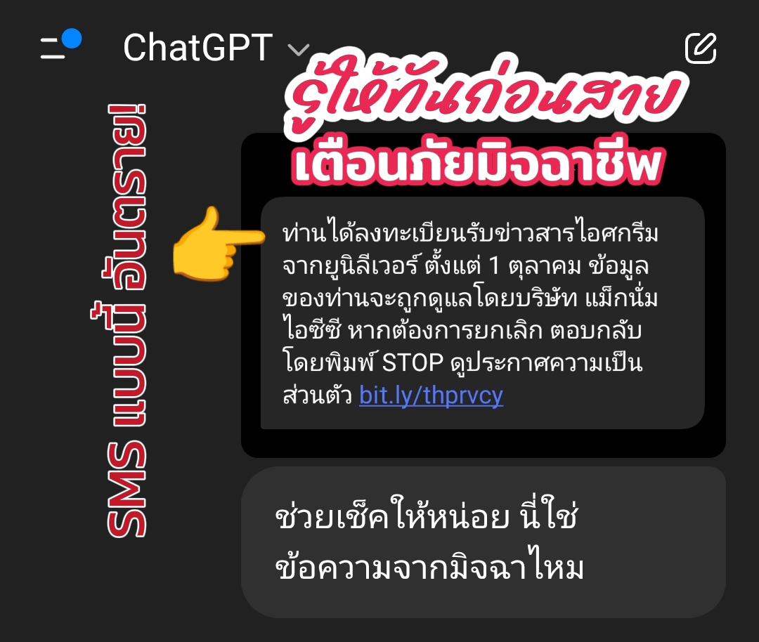 🙋สวัสดีค่ะ เพื่อนๆ วันนี้! เจอสดๆร้อนๆเลย พอดีว่า เราได้รับข้อความ SMS อย่างที่เห็นตามภาพเลยค่ะ เป็นครั้งแรกนะ ที่มีข้อความส่งมาแบบนี้ เราก็ไม่รู้จะถามใครดี แต่พอจะนึกขึ้นมาได้ ChatGPT นี่แหละ เราก็เลยลองแคปข้อความถามดู แล้วคำตอบที่ได้จาก Chatgpt ค้นหาข้อมูลมาให้ประมาณนี้ค่ะ ลองอ่านดูน๊า (ห้ามกดคลิกใดๆตามที่มันบอกเด็ดขาด)‼️เตือนภัย, เตือนภัยออนไลน์, มิจฉาชีพรูปแบบใหม่, ข้อความsms, ช่วยแชร์หน่อยนะจ๊ะ 🤳💕