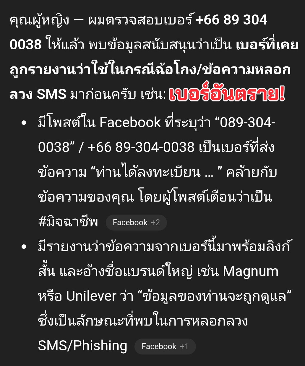 สดๆ ร้อนๆ เช้านี้ โทรมาบอกว่าเราไปเปิดเบอร์โทรศัพท์ของ AIS ไว้ แล้วมีคนร้องเรียนว่าเป็นเบอร์ที่ชักชวนเล่นพนันออนไลน์ ถ้าไม่ได้ทำ ให้ไปยื่นเอกสารยืนยันและปิดเบอร์ที่ นครสวรรค์ ภายใน 2 ชั่วโมง ข้อ