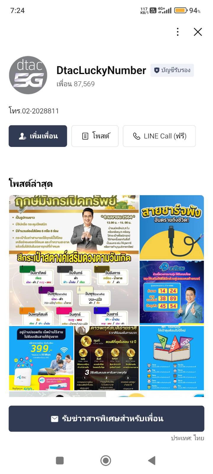 โดยบอกว่าสามารถดูเบอร์มงคลและเบอร์สวยได้ให้ Add Line