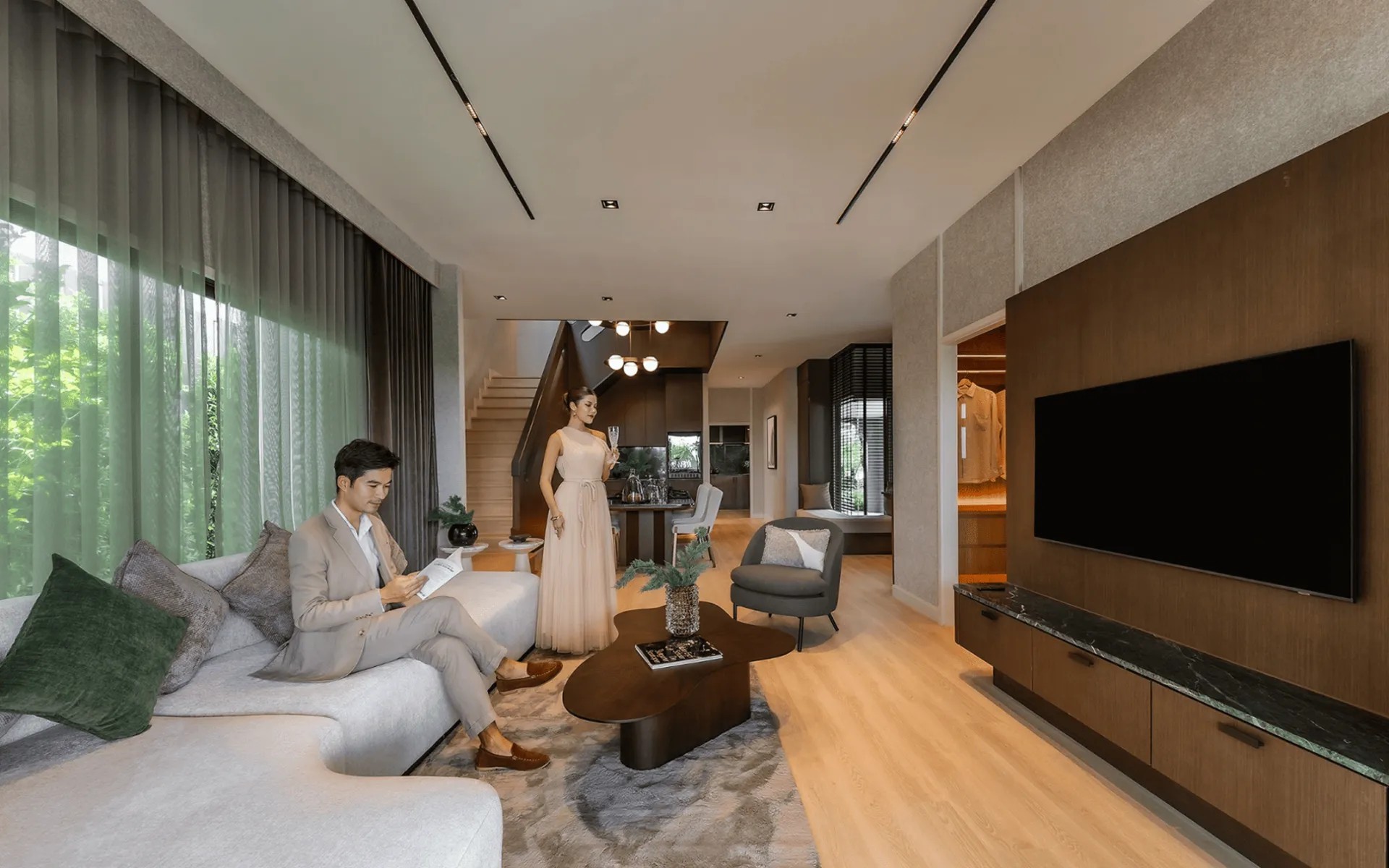 บ้านเดี่ยว เวนิว ฟอร์ม บางนา ศรีวารี โครงการบ้านดีไซน์ Mid-Century Modern บนทำเลใกล้บางนา–สุวรรณภูมิ เชื่อมต่อถนนสายหลักและสนามบินได้สะดวก รายล้อมด้วยบรรยากาศสีเขียวและคลับเฮาส์ครบครันทั้งฟิตเนส สระว่ายน้ำ และโคเวิร์คกิ้งสเปซ ตัวบ้านออกแบบด้วยคอนเซ็ปต์ Vertical Form ให้โถงสูงโปร่งกว่า 6 เมตร รับแสงธรรมชาติเต็มที่ พร้อมฟังก์ชันห้องนั่งเล่น ห้องรับแขก และพื้นที่พักผ่อนชั้นบนที่แยกสัดส่วนเป็นส่วนตัว เหมาะสำหรับครอบครัวที่มองหาบ้านสไตล์โมเดิร์นคลาสสิกที่ทั้งสวย เท่ และตอบโจทย์การใช้ชีวิตประจำวันอย่างลงตัวรอให้คุณค้นพบรายละเอียดอีกมากในโครงการนี้
