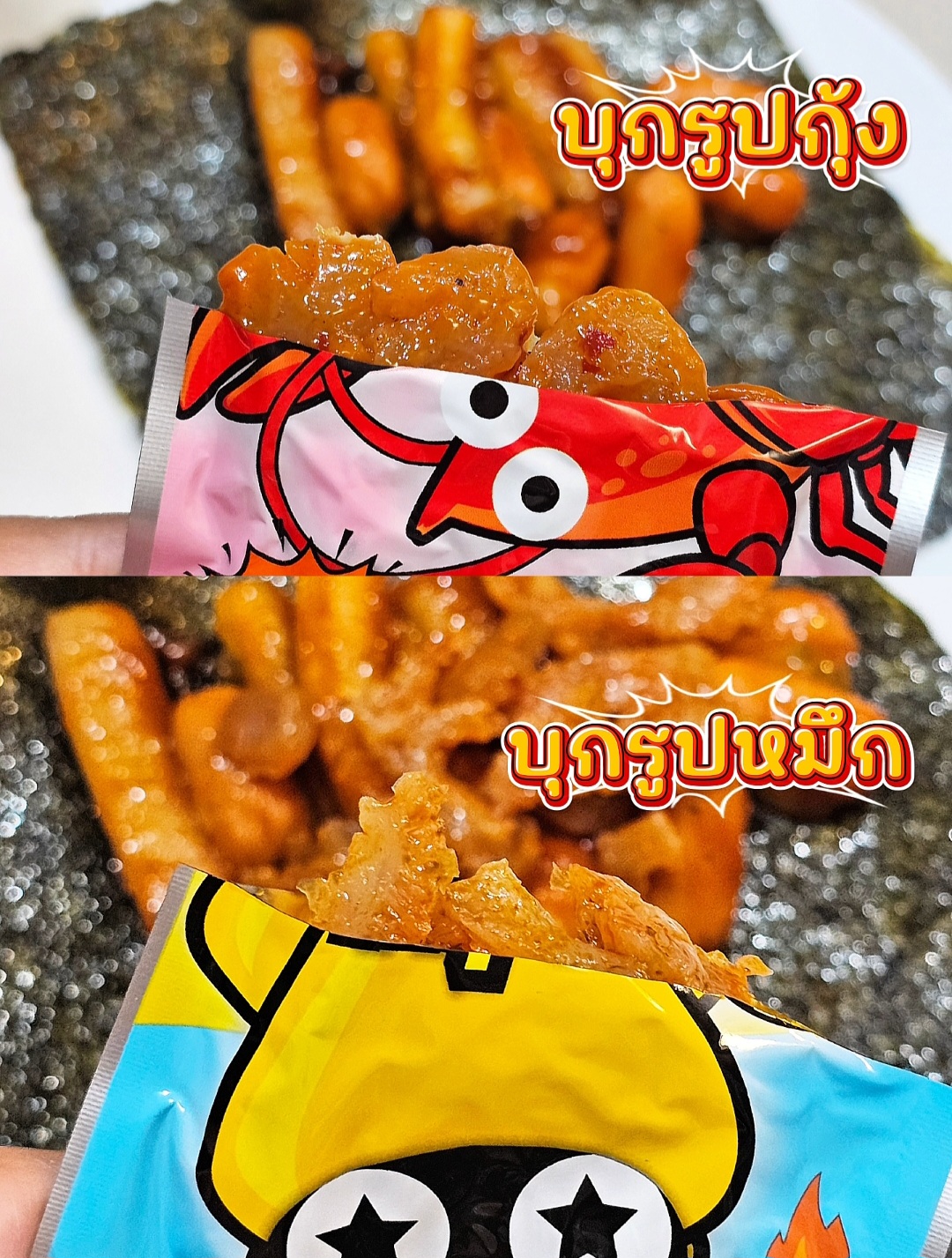 แล้วโรย “ซูเปอร์กรุบ บุกรูปกุ้ง บุกรูปหมึก” รสหม่าล่า ด้านบนแบบจัดเต็ม 🔥คือกรุบ เด้ง เข้มข้น ครบในคำเดียว ฟีลเกาหลี พอเคี้ยวพร้อมสาหร่ายคือกลิ่นดีมาก นัวสาหร่ายมาก จนเพื่อนในวงต้องถามว่า “ทำเองเหรอ?” 😆