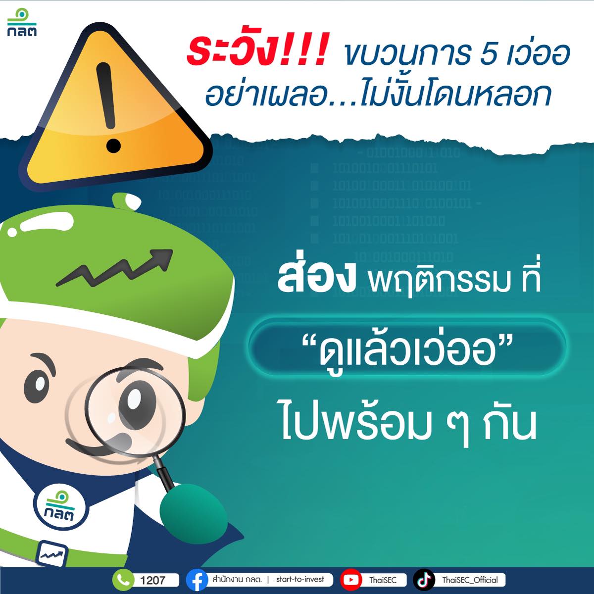 5 เว่อร์...อย่าเผลอลงทุน ก.ล.ต. ชวนสังเกตเและจับผิดพฤติกรรมของ “ขบวนการ 5 เว่ออ”