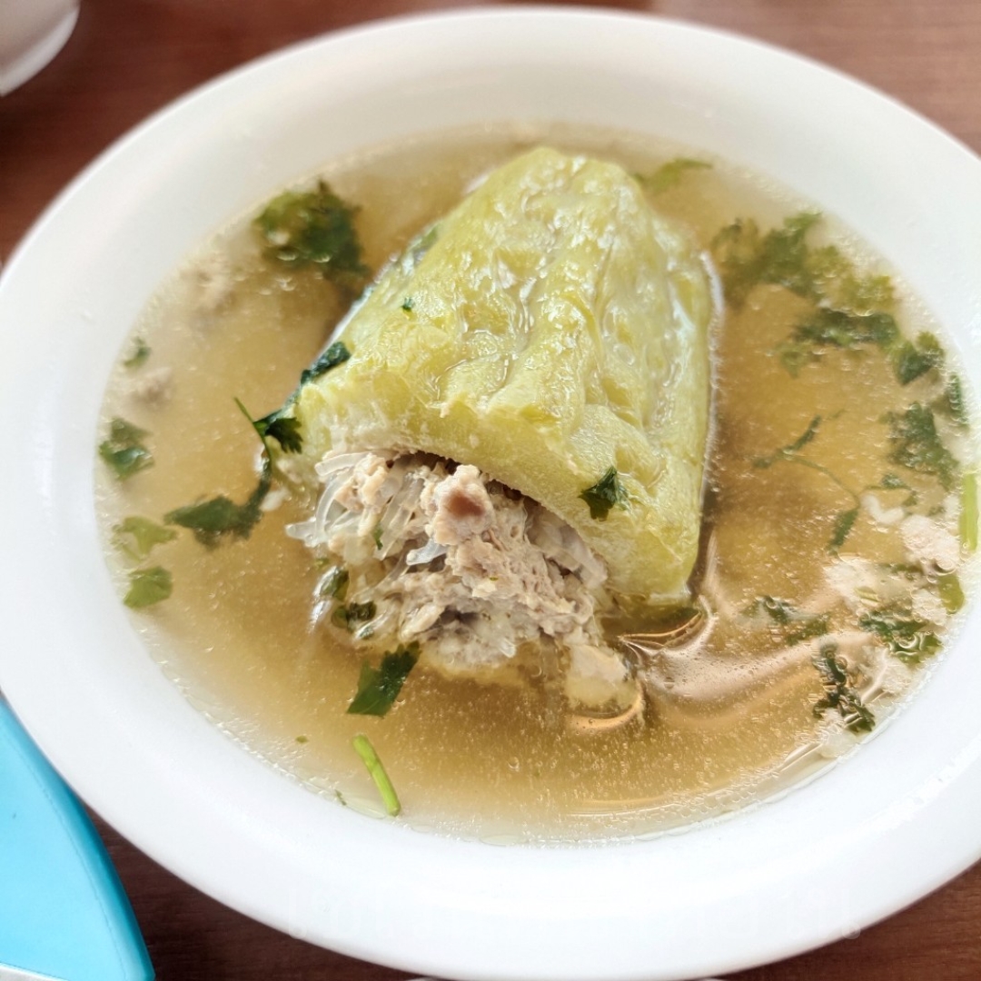 ไส้หมูด้านในยัดมาแบบเยอะเลยครับ เนื้อมะระติดขมปลายนิดๆ แต่เปื่อยกำลังพอดี